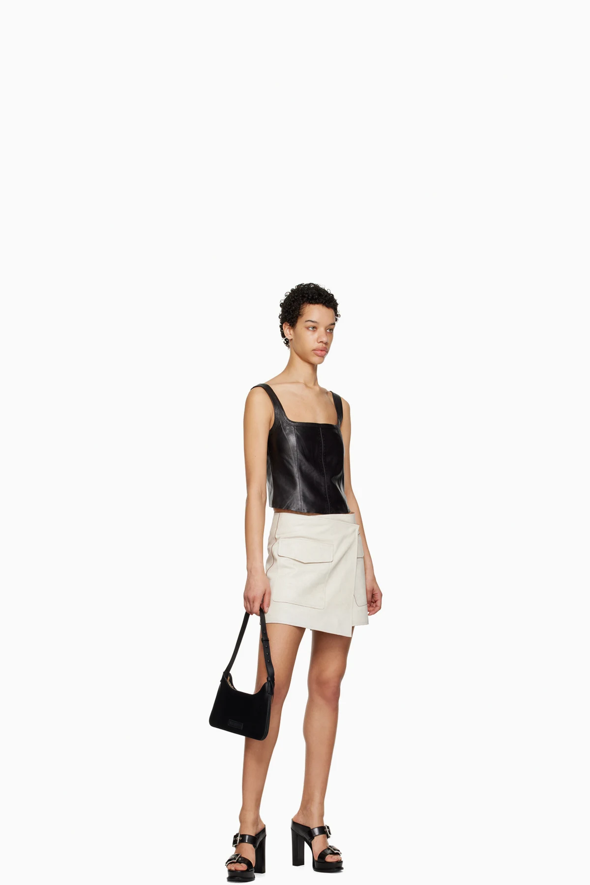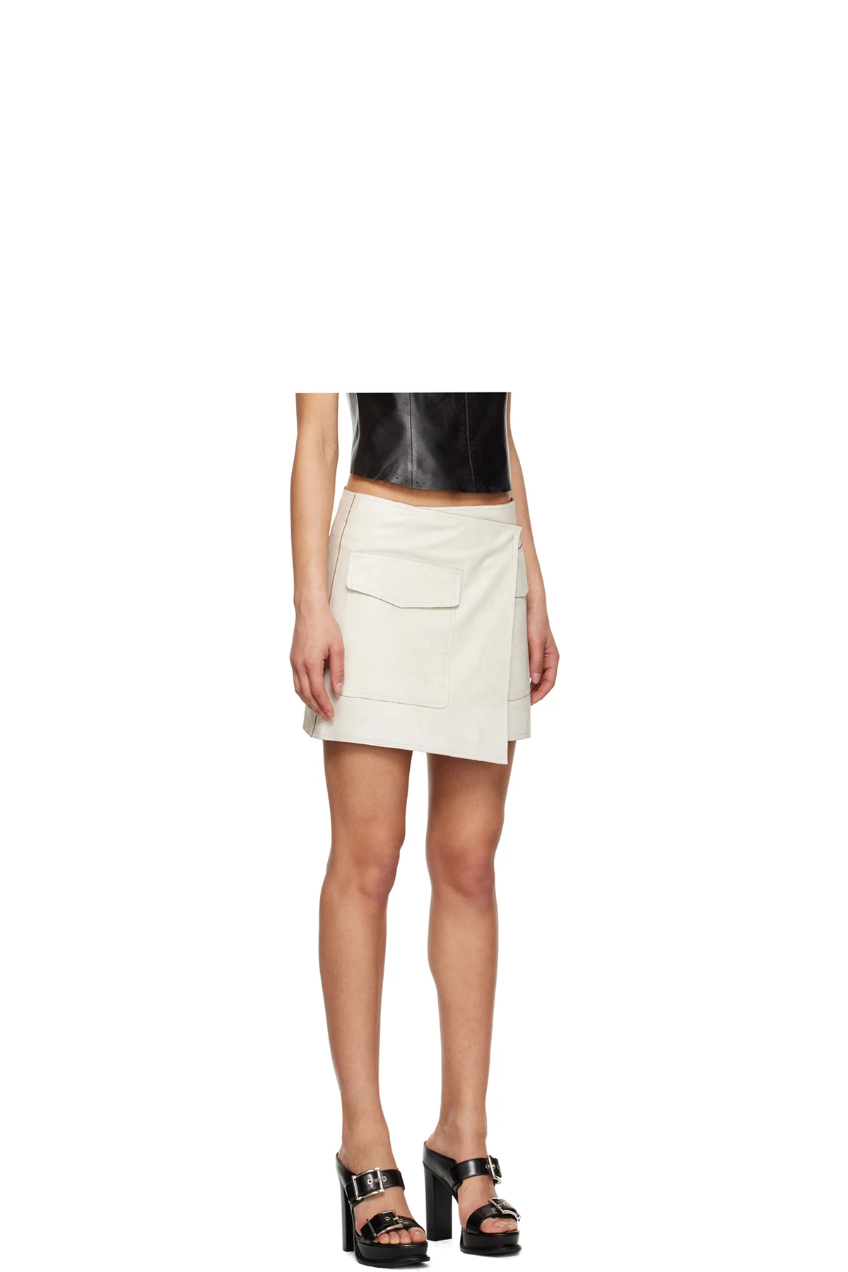 Off-White Trench Wrap Leather Miniskirt