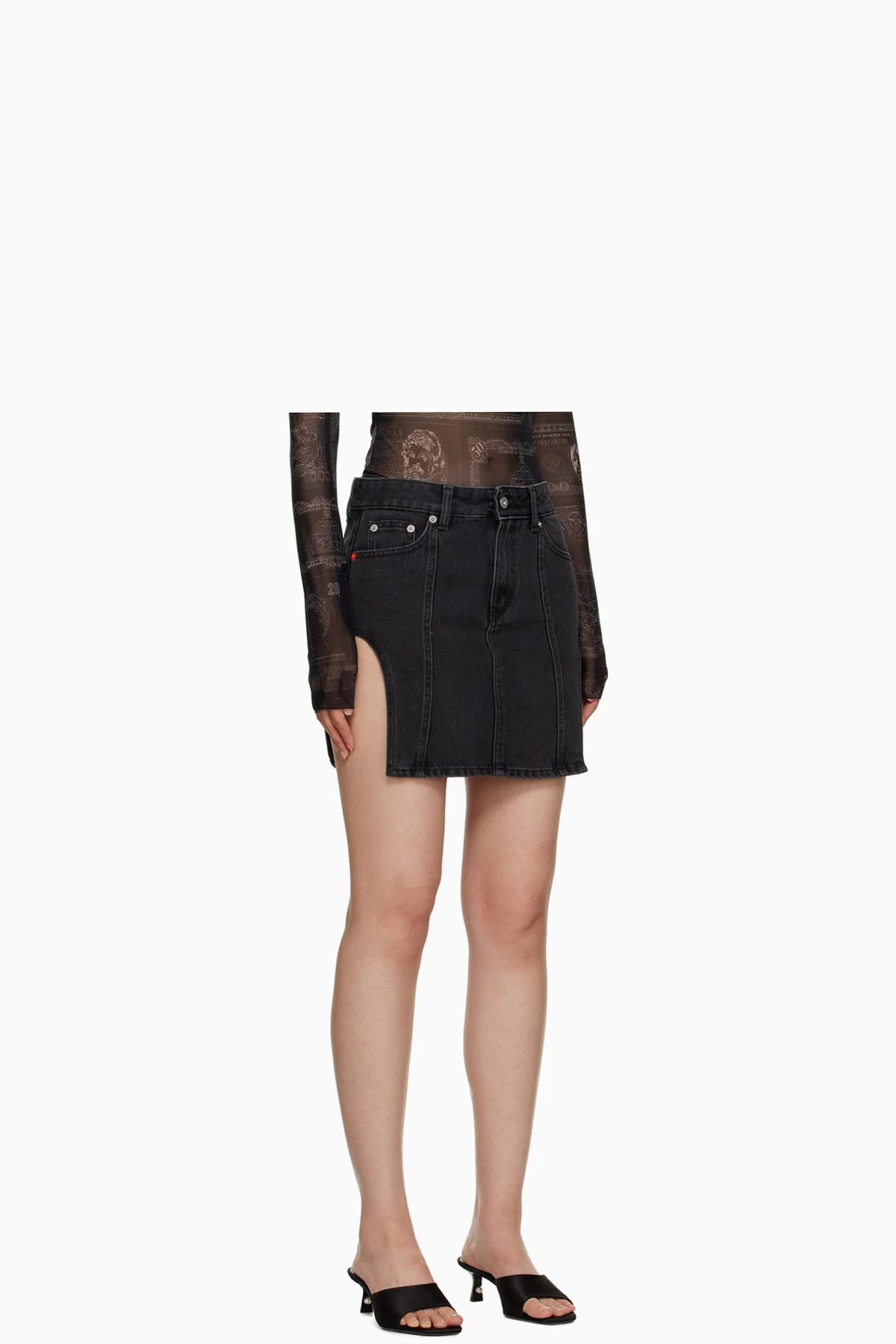Paneled cotton denim skirt.