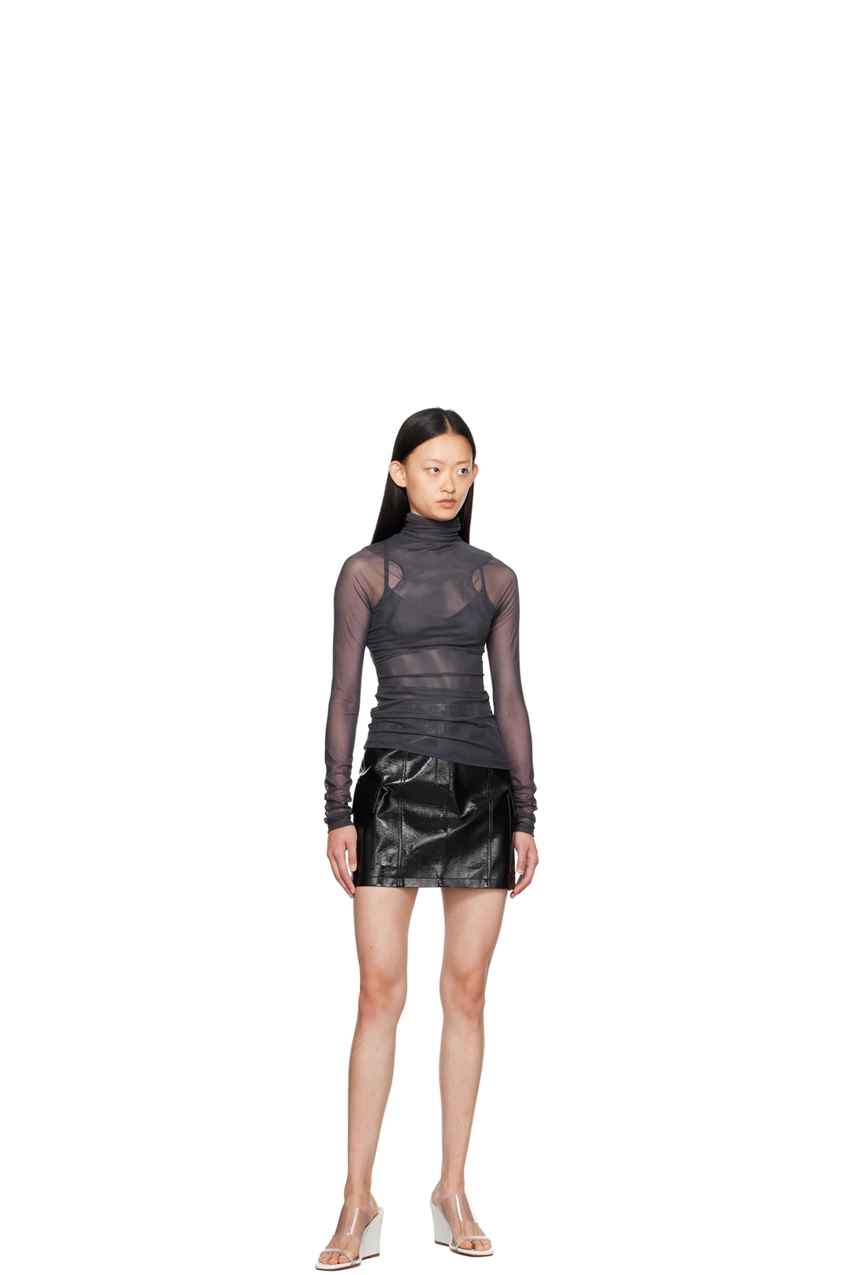 Crinkled patent faux-leather skirt.