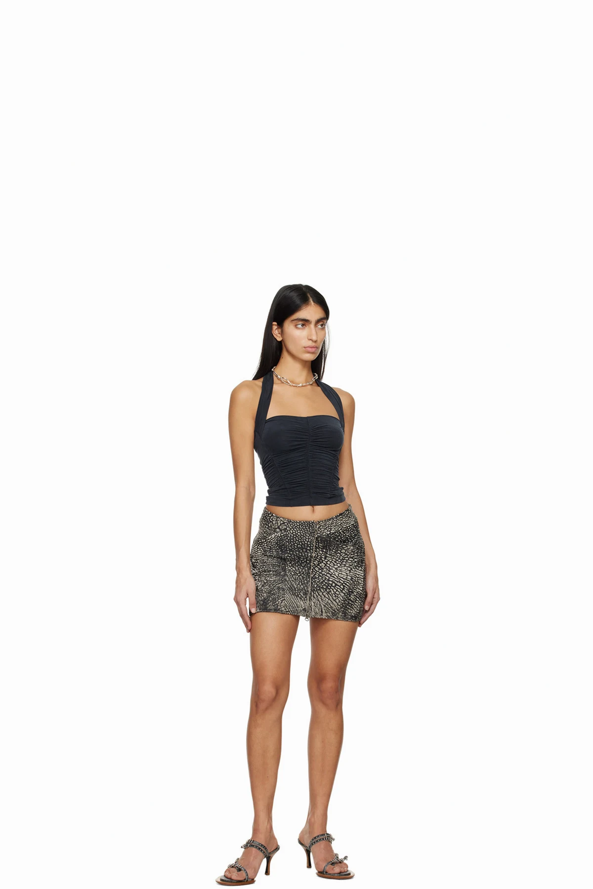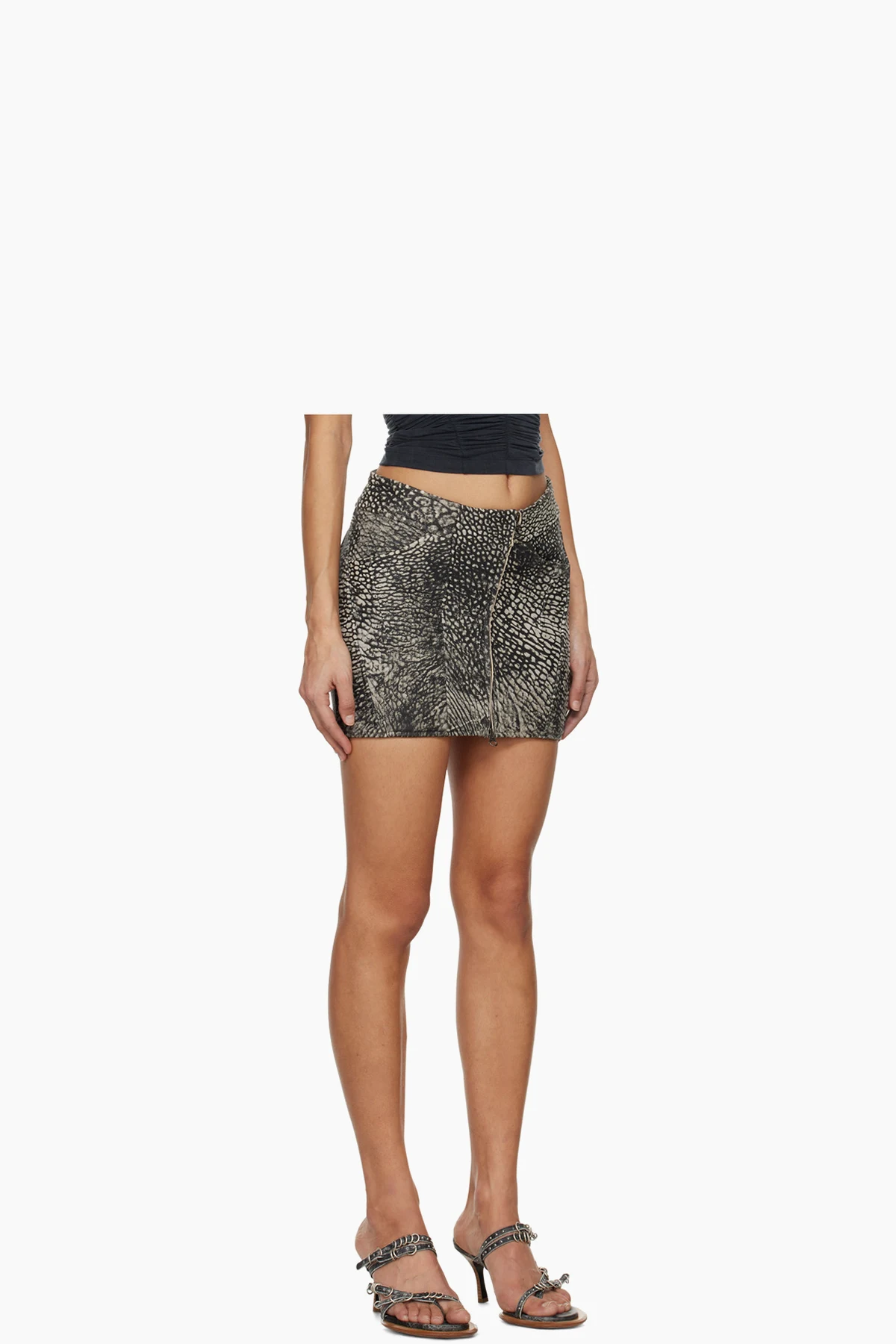 Black & Gray Cucyde Leather Miniskirt
