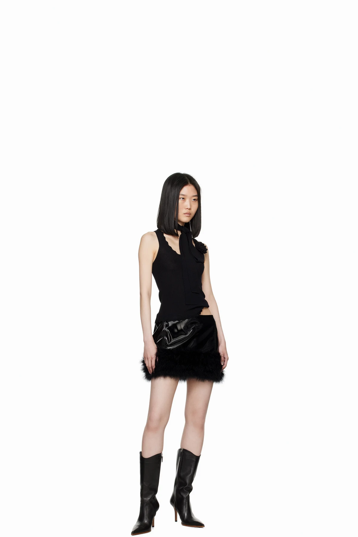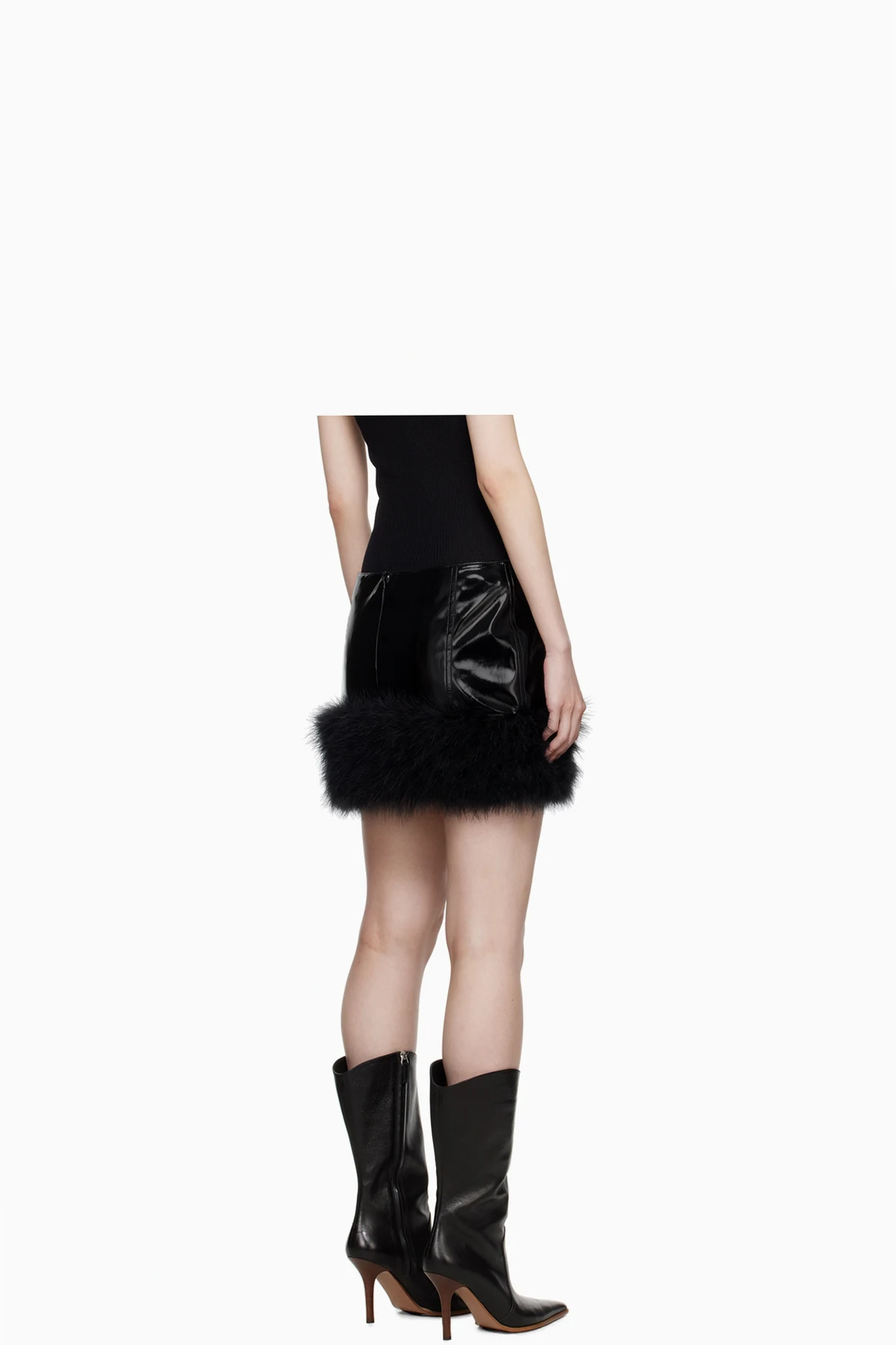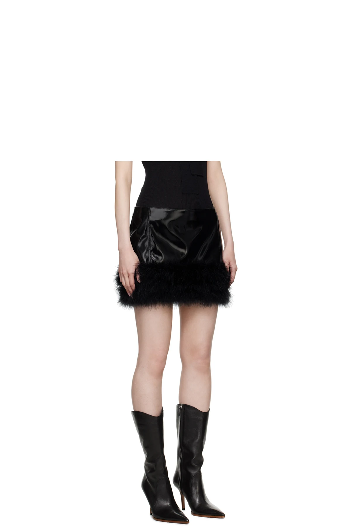 Black Marabou Feather Faux-Leather Miniskirt