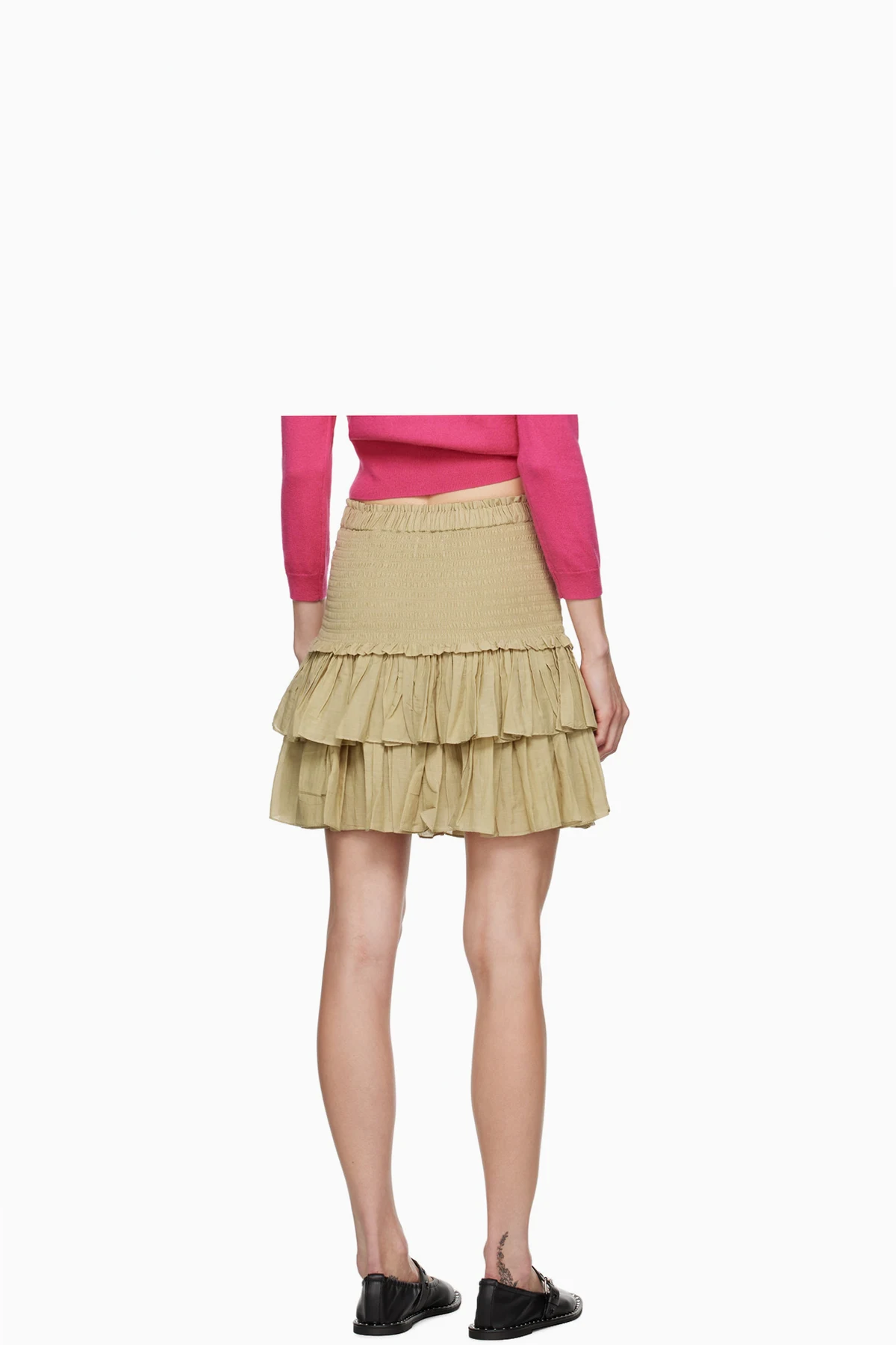 Organic cotton- and viscose-blend voile skirt. Shirring and gathering throughout.