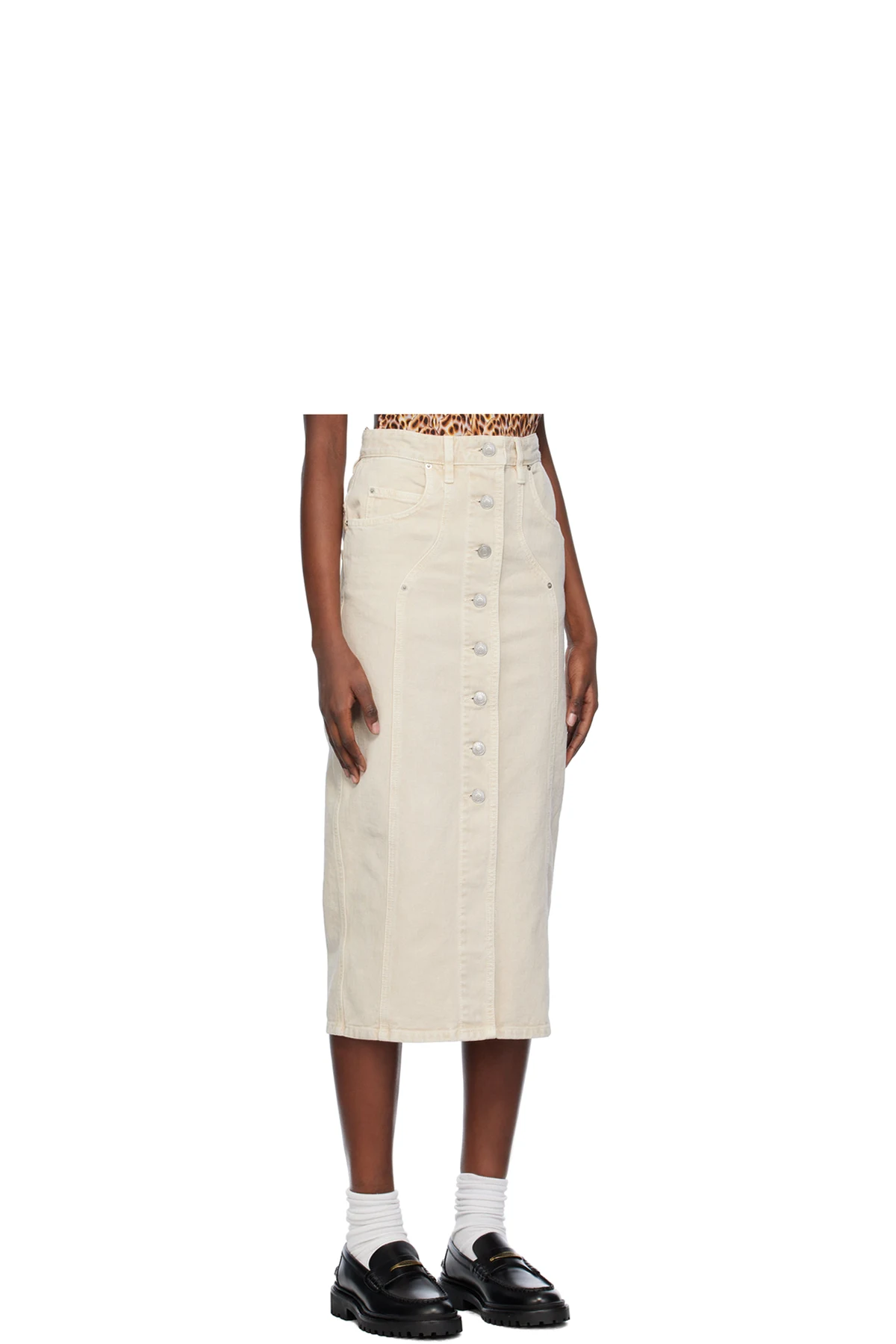 Beige Vandy Denim Midi Skirt