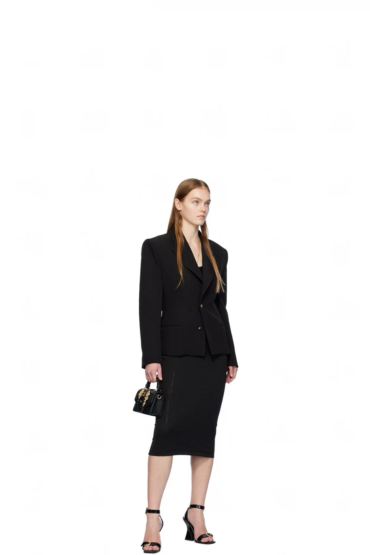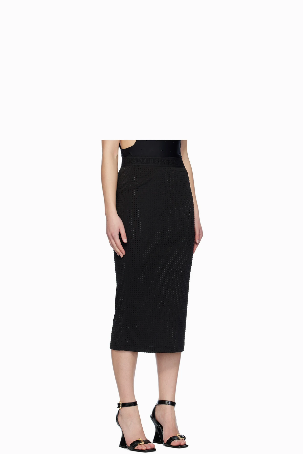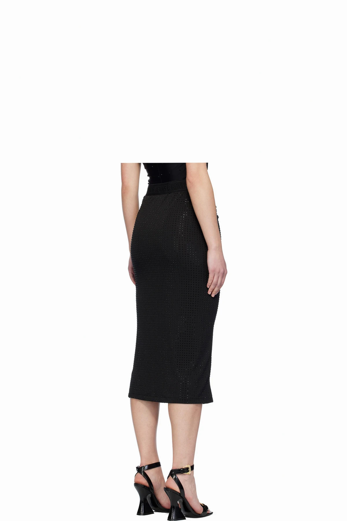 Black Crystal-Cut Midi Skirt