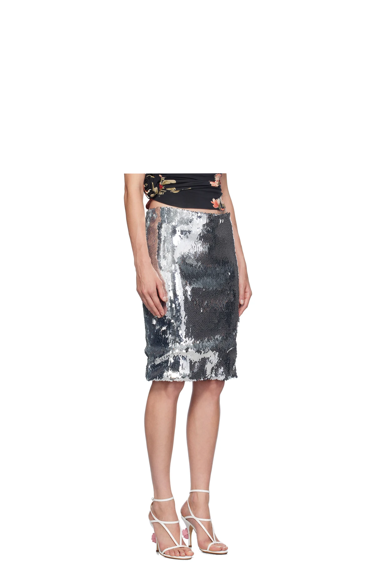 Silver Sequinned Midi Skirt