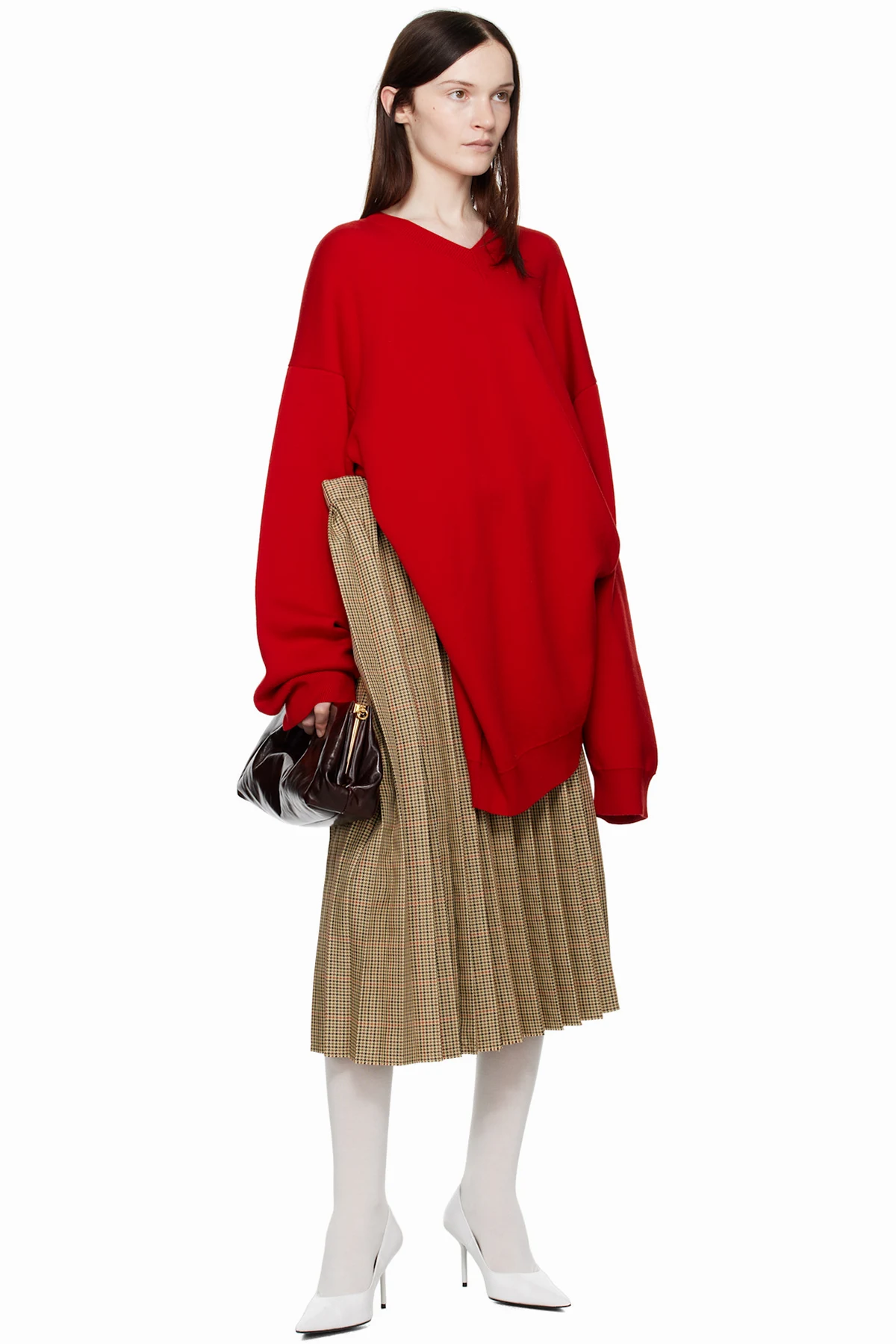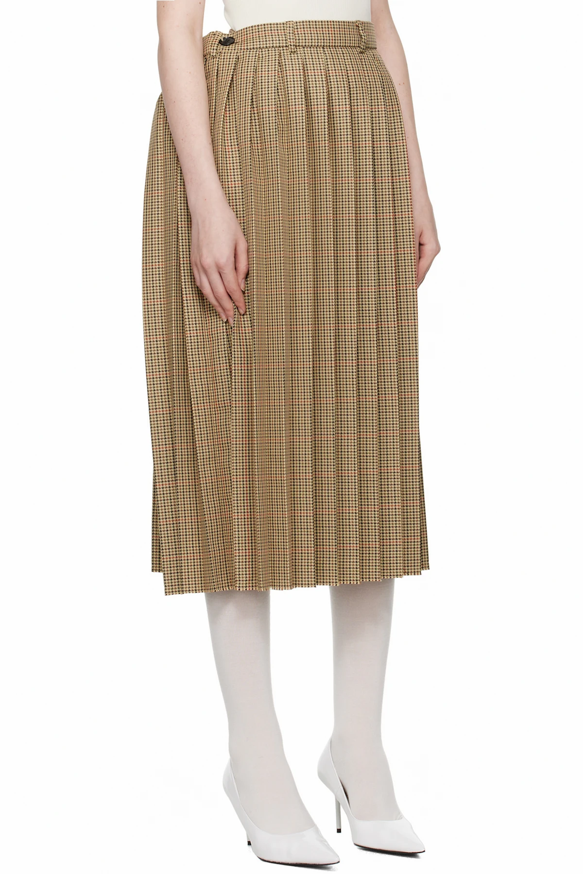 Polyester houndstooth midi skirt. Knife pleats throughout.