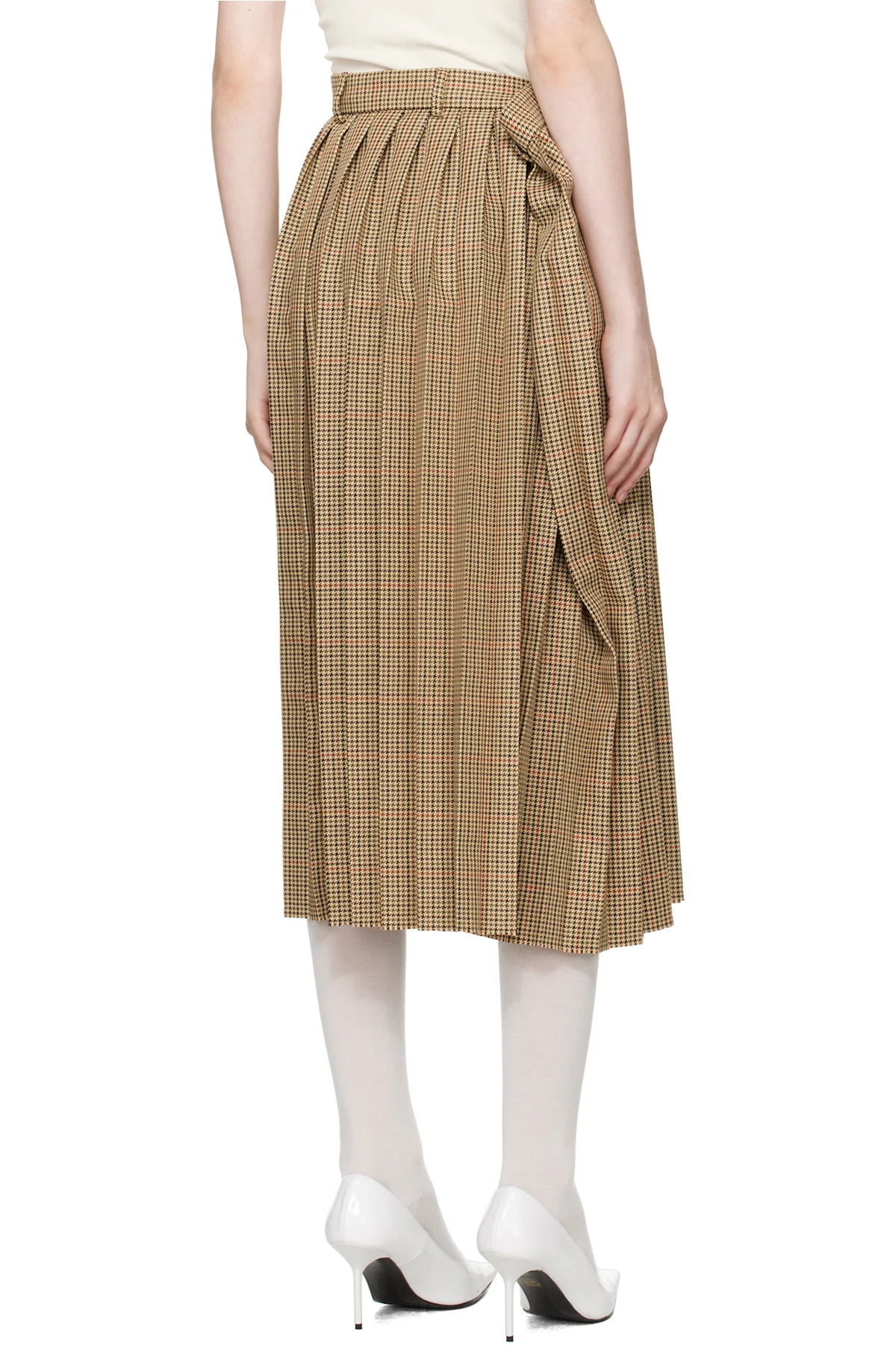 Beige Pleated Midi Skirt