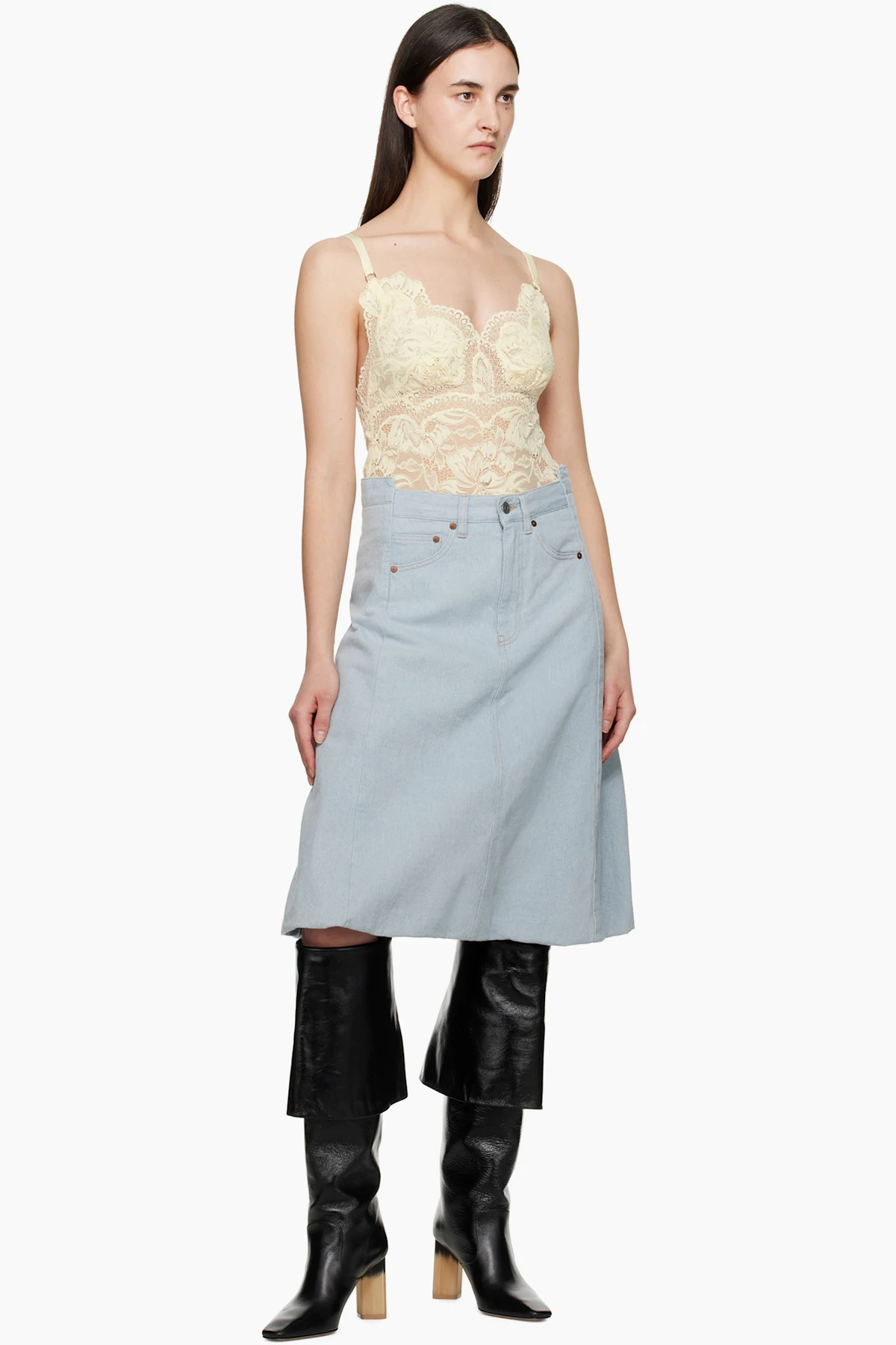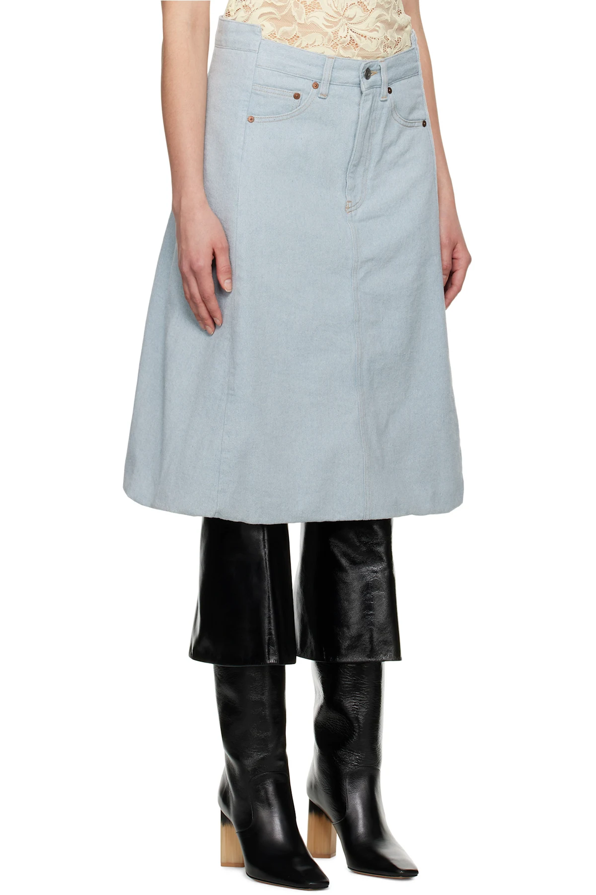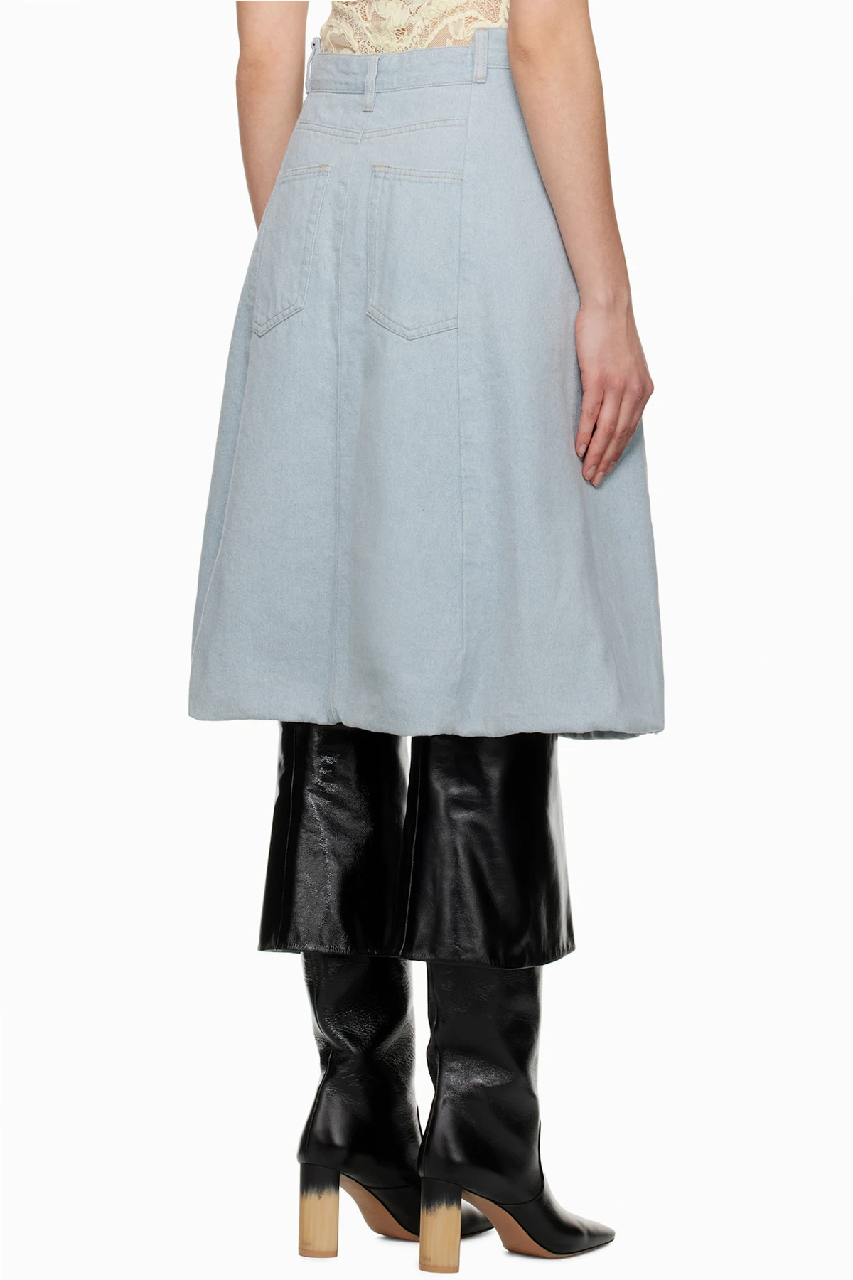 Non-stretch recycled cotton-blend denim midi skirt. Fading throughout.