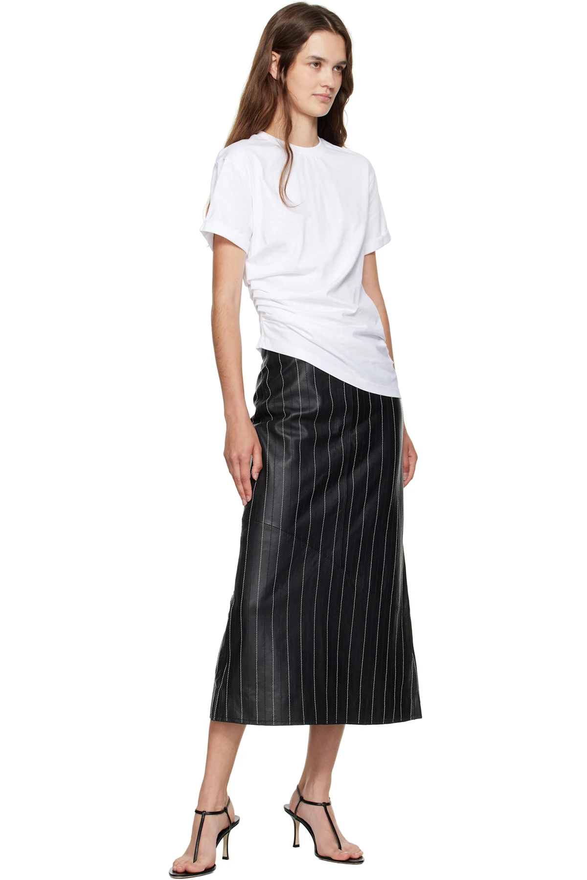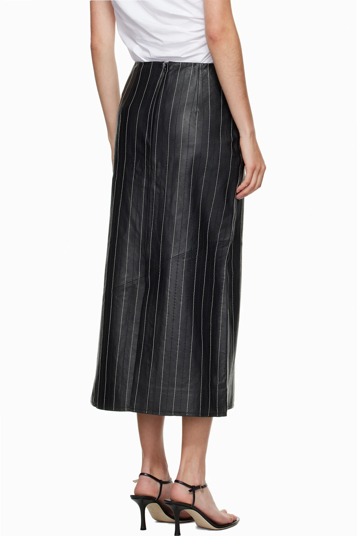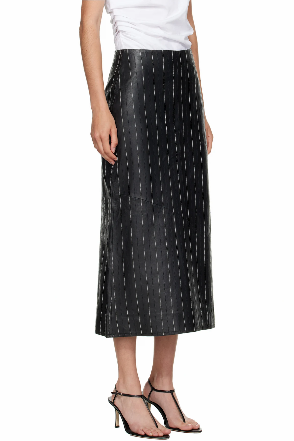 Grained leather midi skirt.