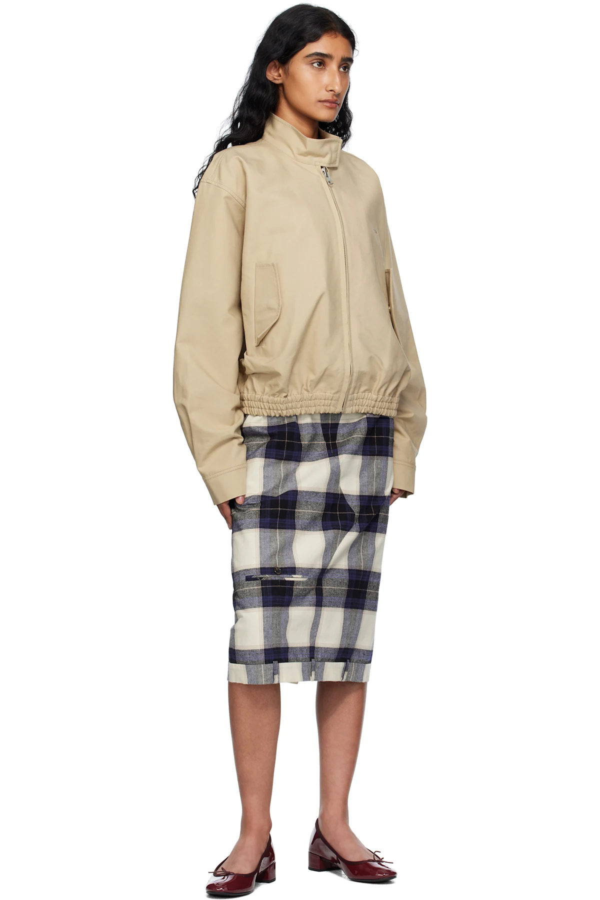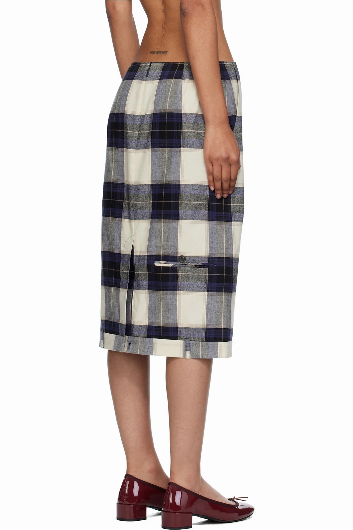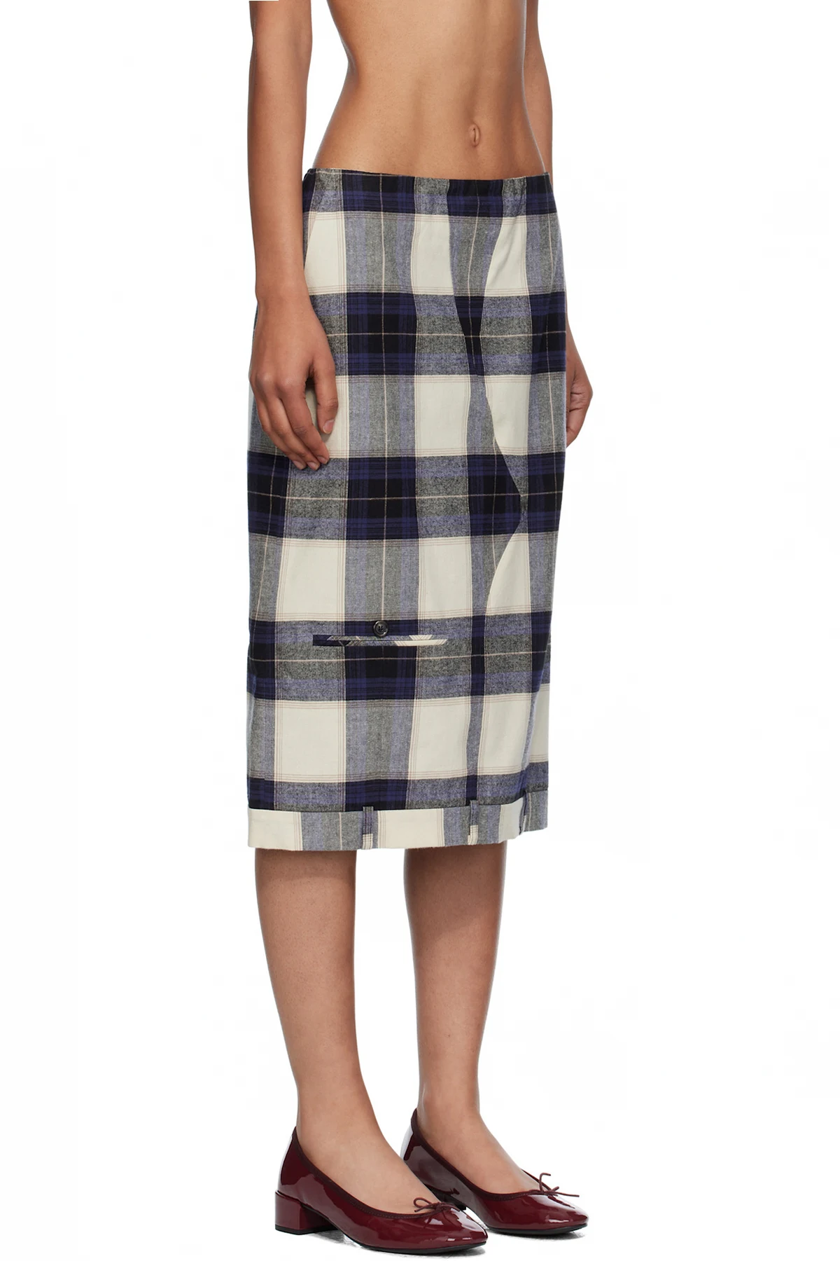 Cotton flannel midi skirt.