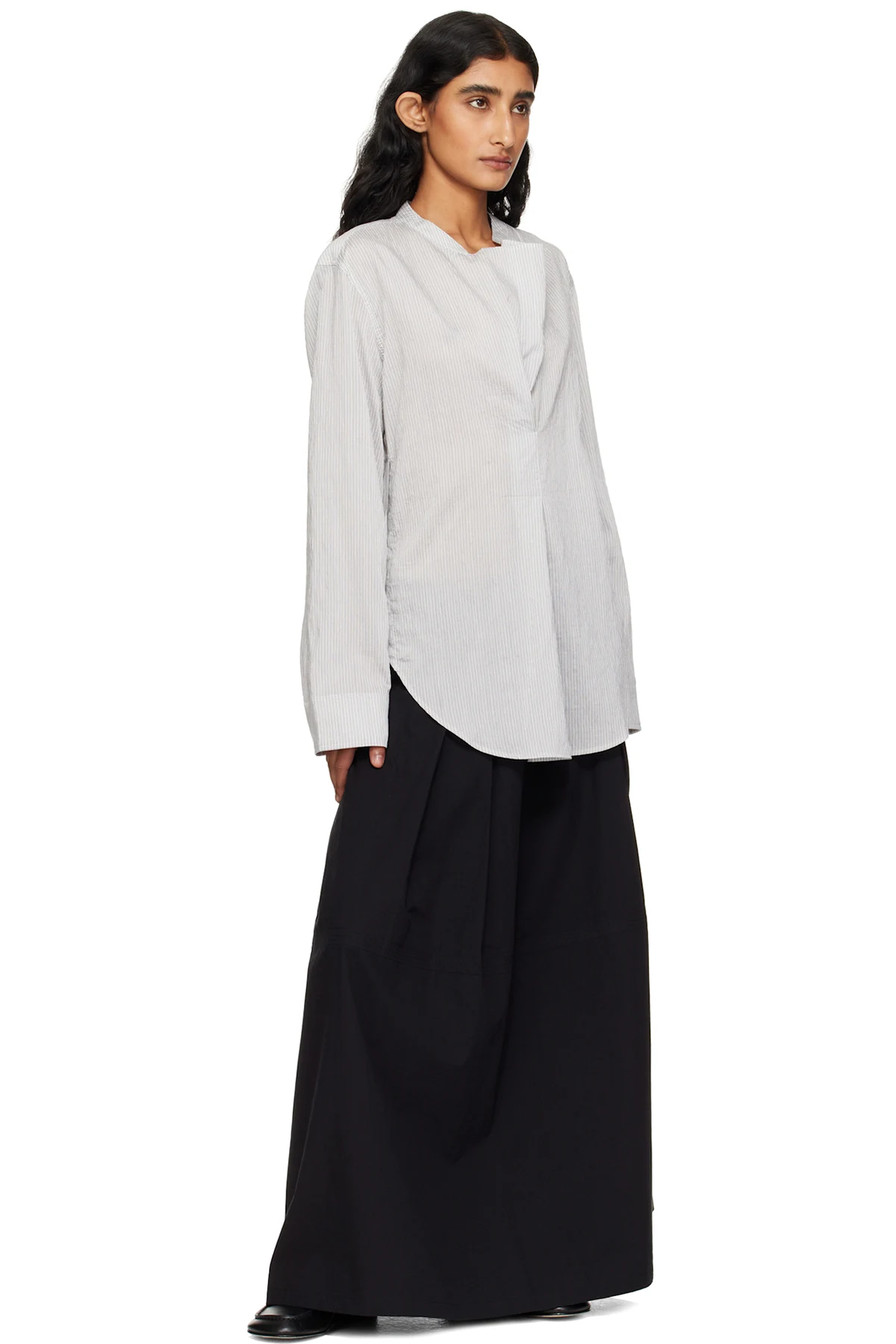 Gray H-Line Striped Maxi Skirt