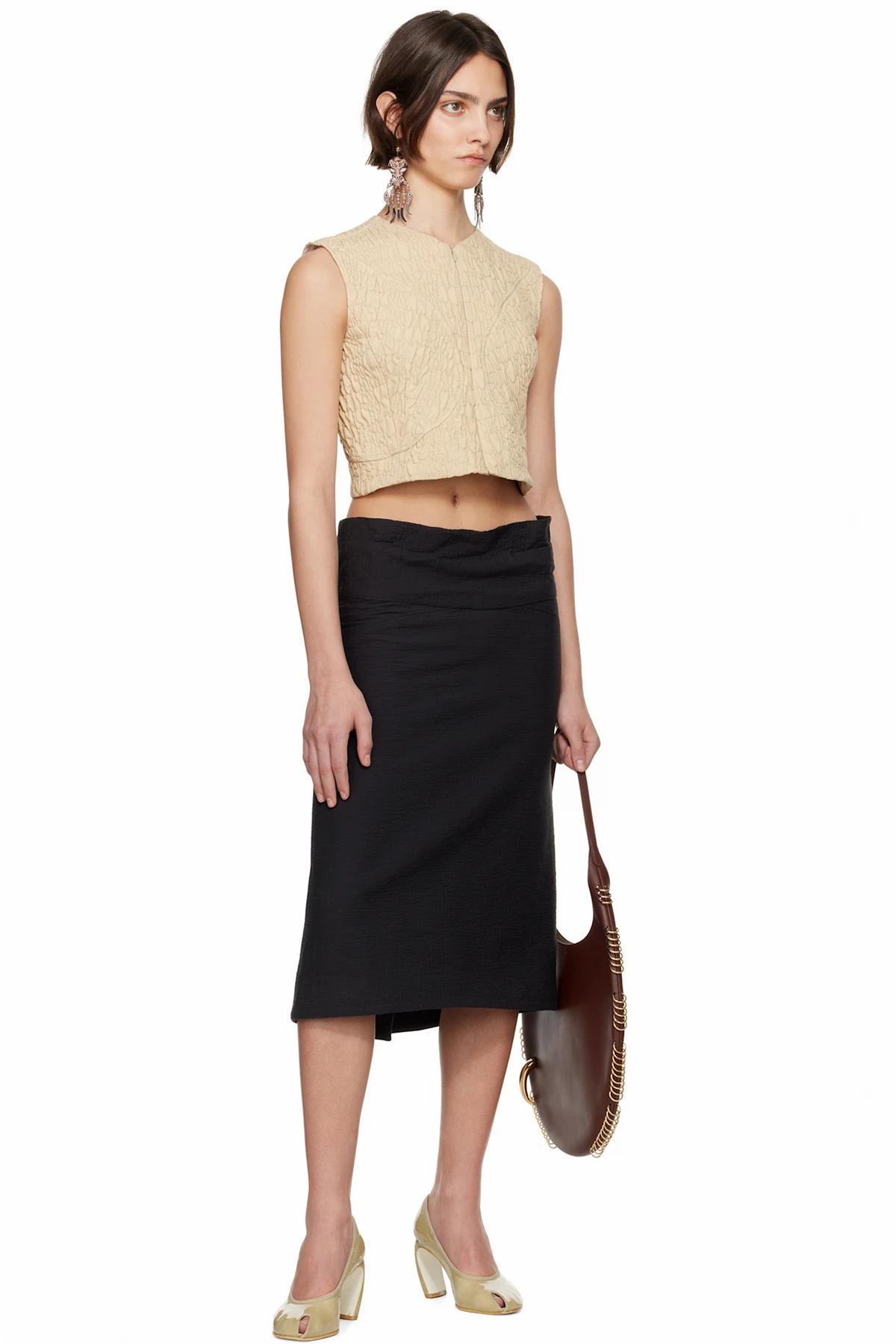 Cotton-blend matelassé midi skirt.