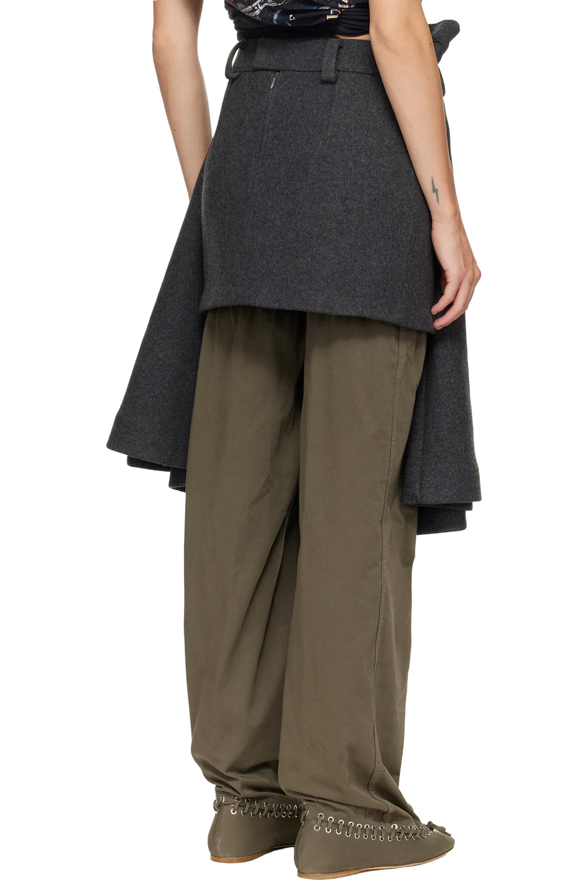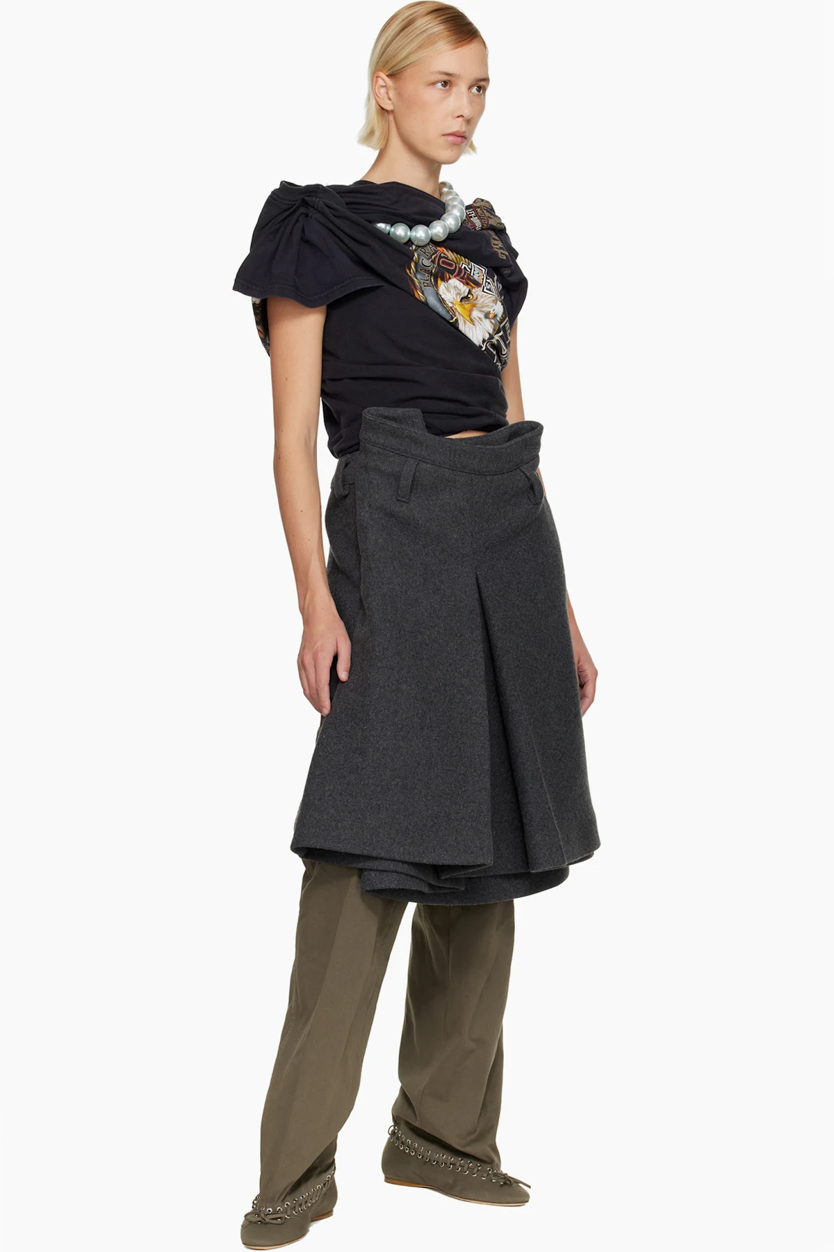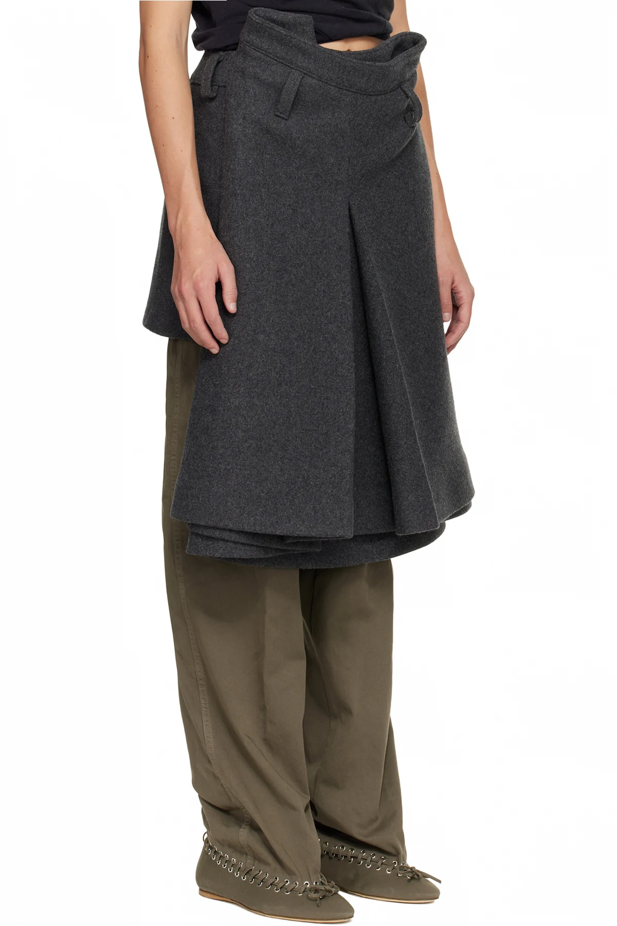 Merino wool melton midi skirt. Integrated skirt-style overlay with inverted box pleat at front.