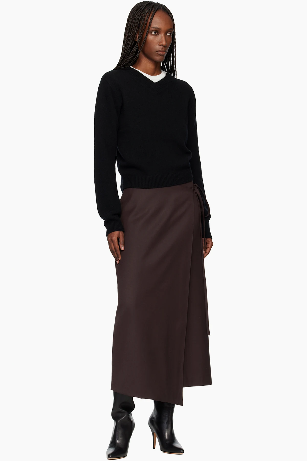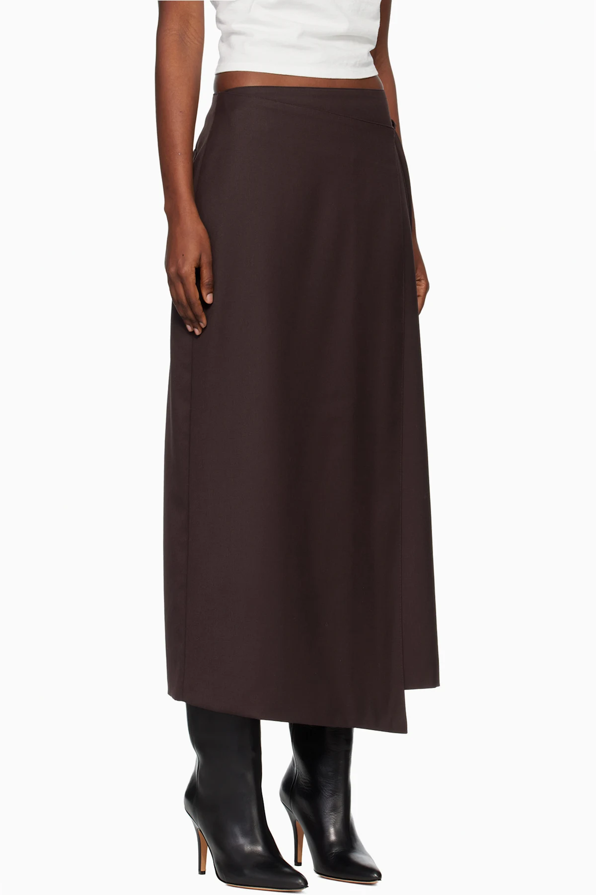 Brown Wool Wrap Midi Skirt