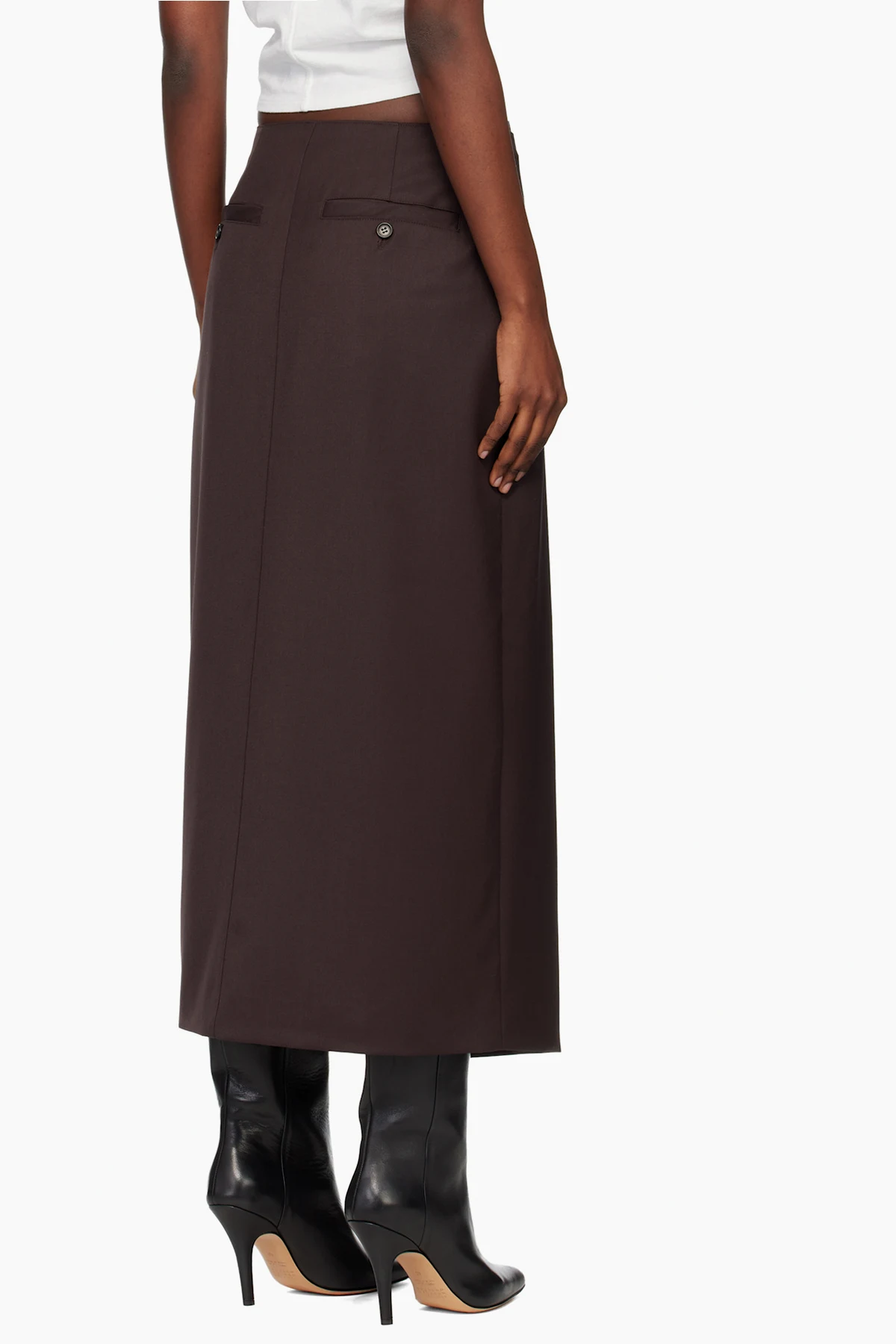 Wool-blend twill midi skirt.