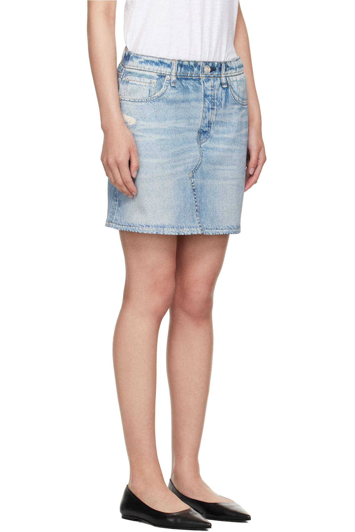 French terry miniskirt. Trompe l'oeil denim graphic printed throughout.