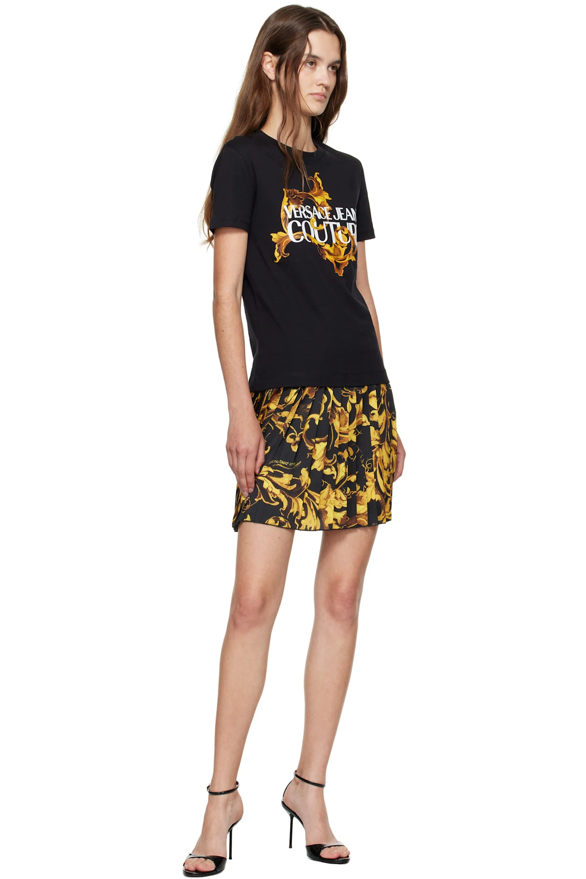 Black & Gold Porcelain Barocco Pleated Miniskirt