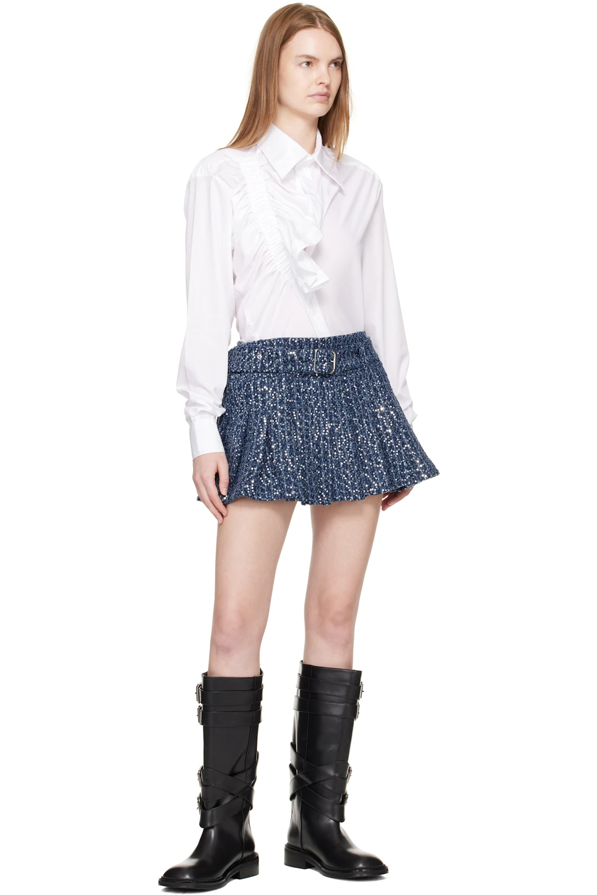Navy Asymmetrical Bow & Ruffle Miniskirt
