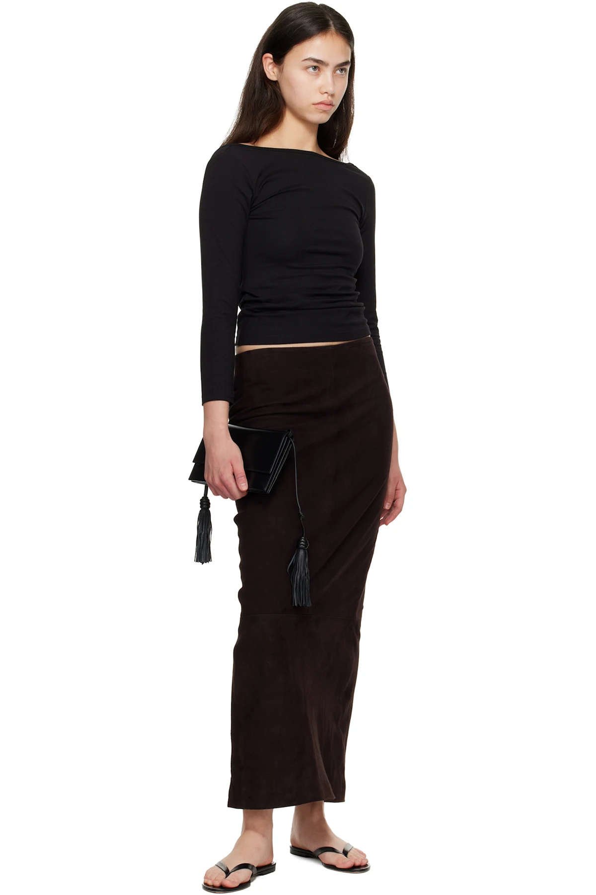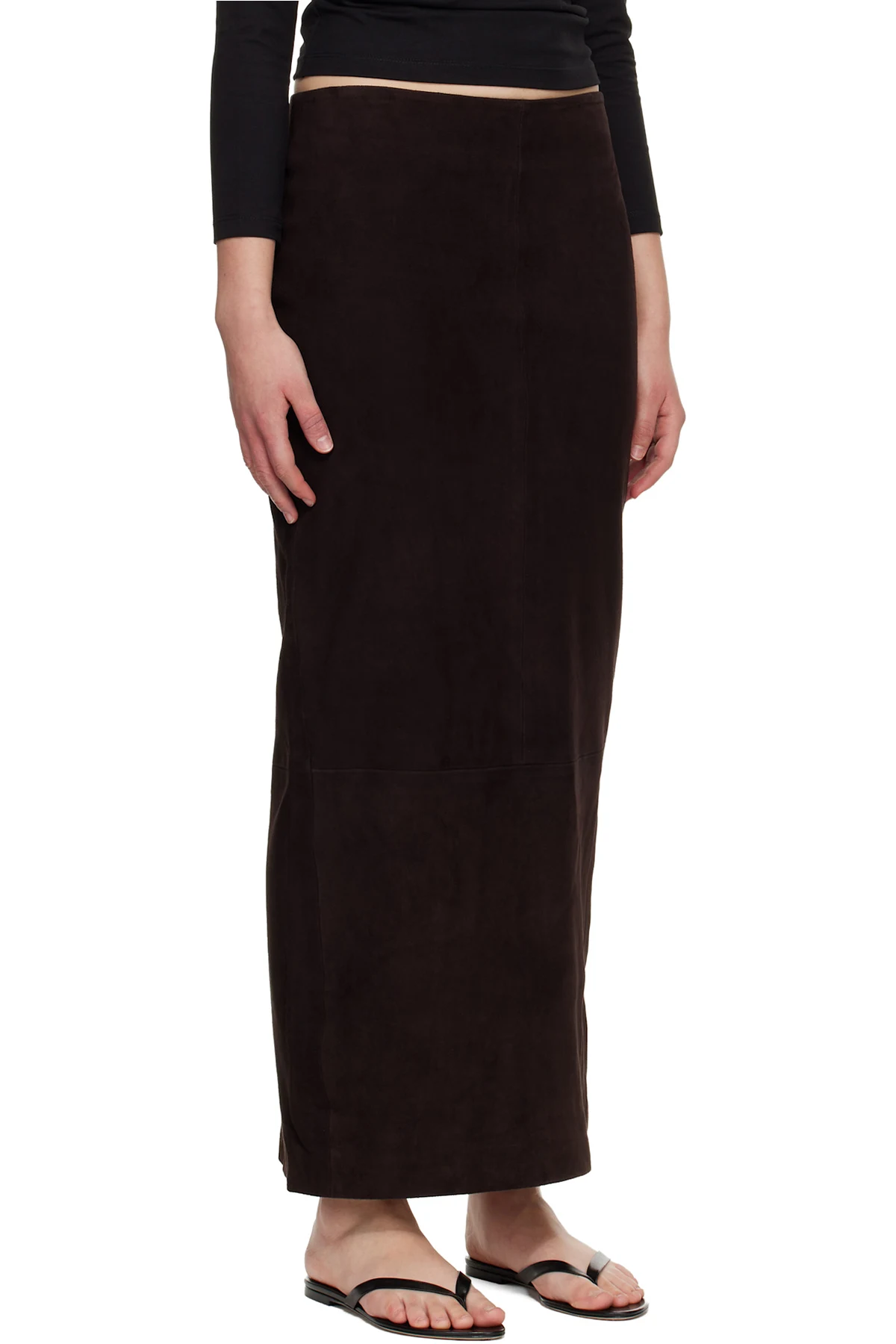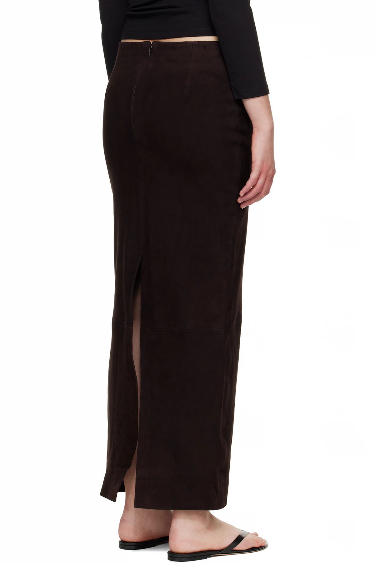 Brown Suede Column Midi Skirt