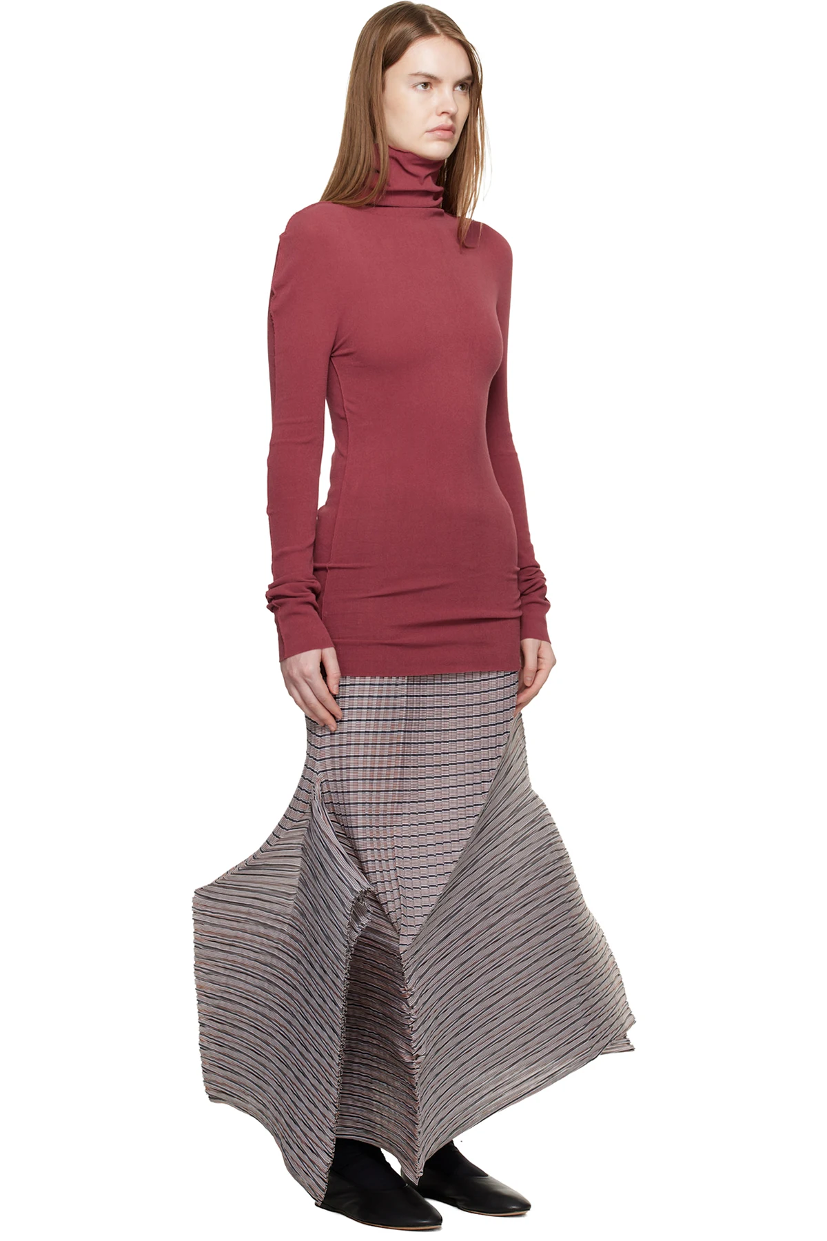Garment-pleated and semi-sheer plain-woven midi skirt.