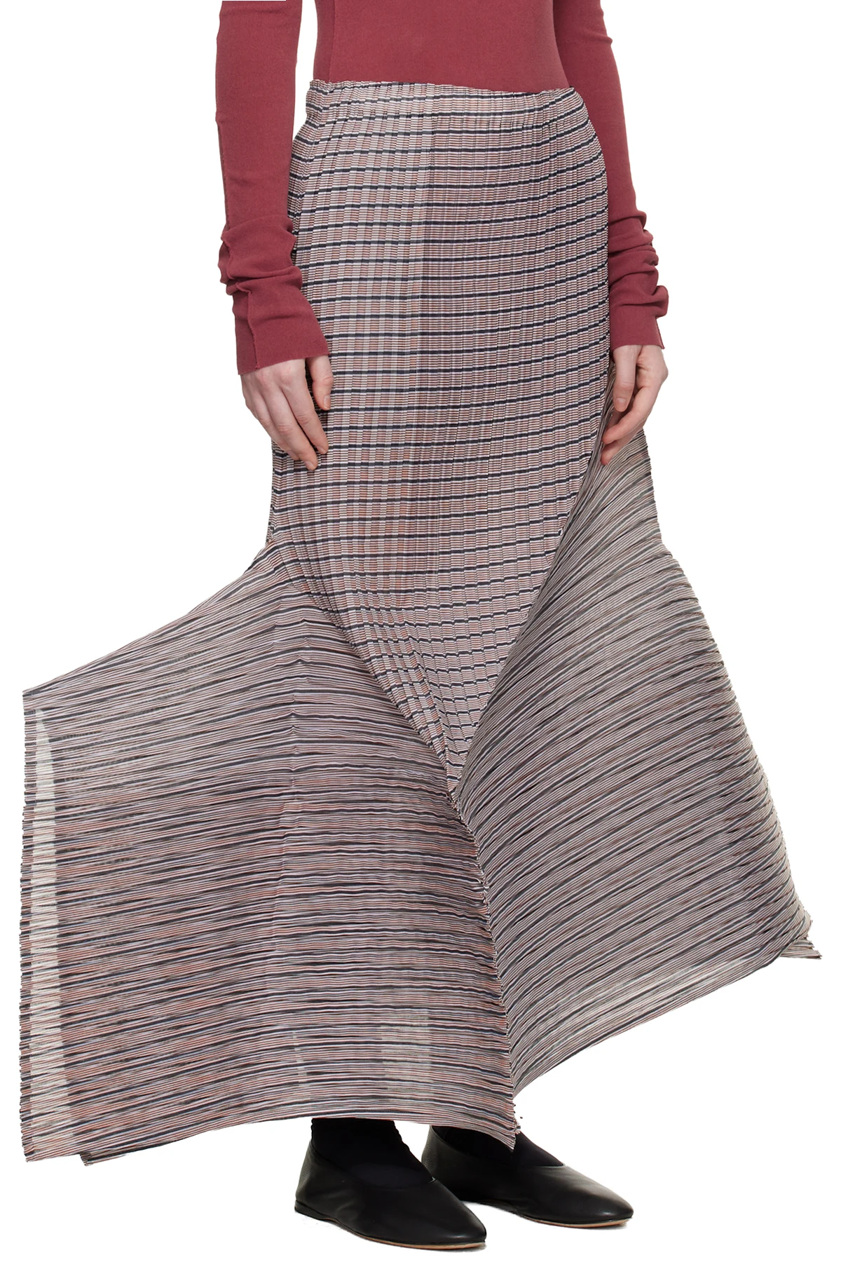 Black & Brown Generic Stripes Machine Pleats Midi Skirt