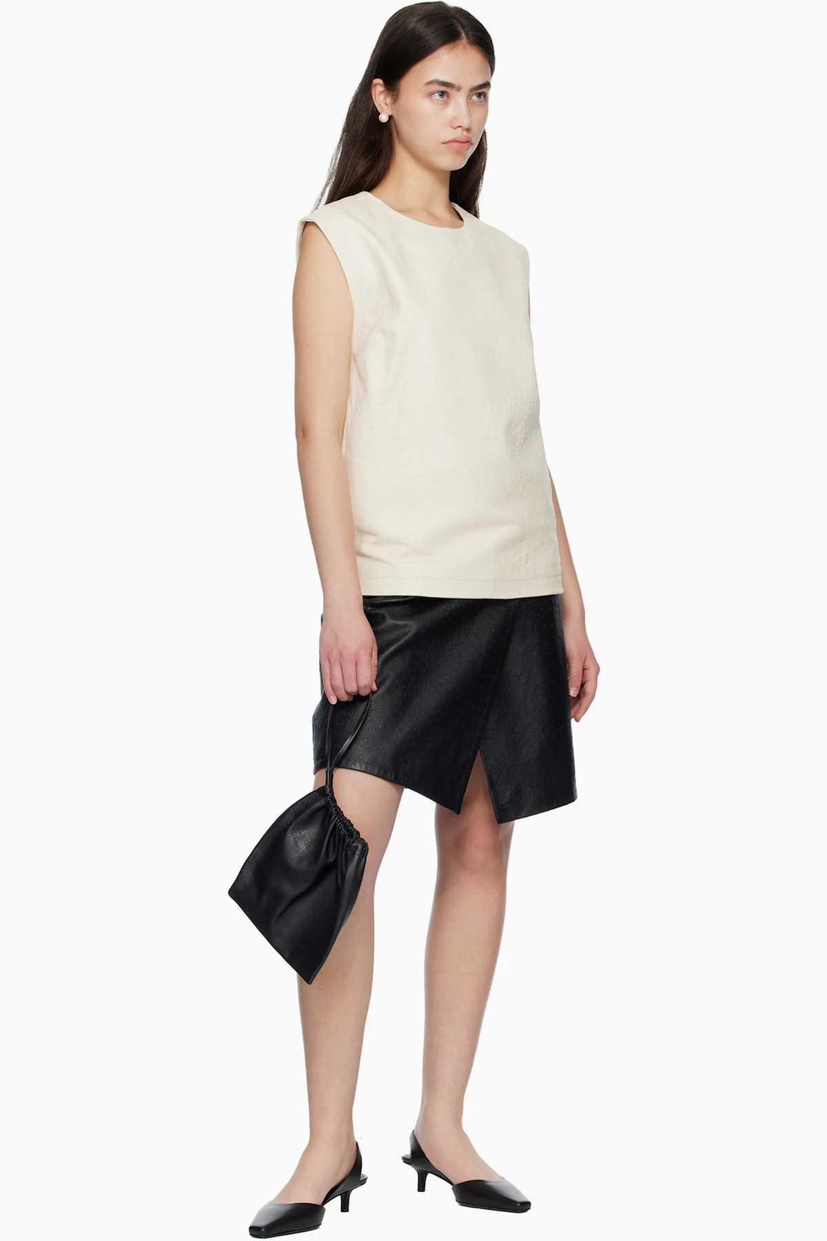 Black GORA Ostrich-Effect Wrap Leather Midi Skirt