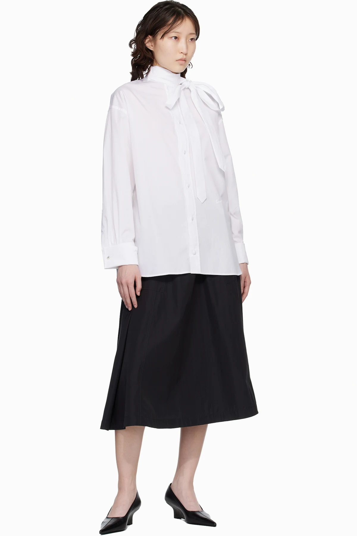 Cotton-blend taffeta midi skirt.