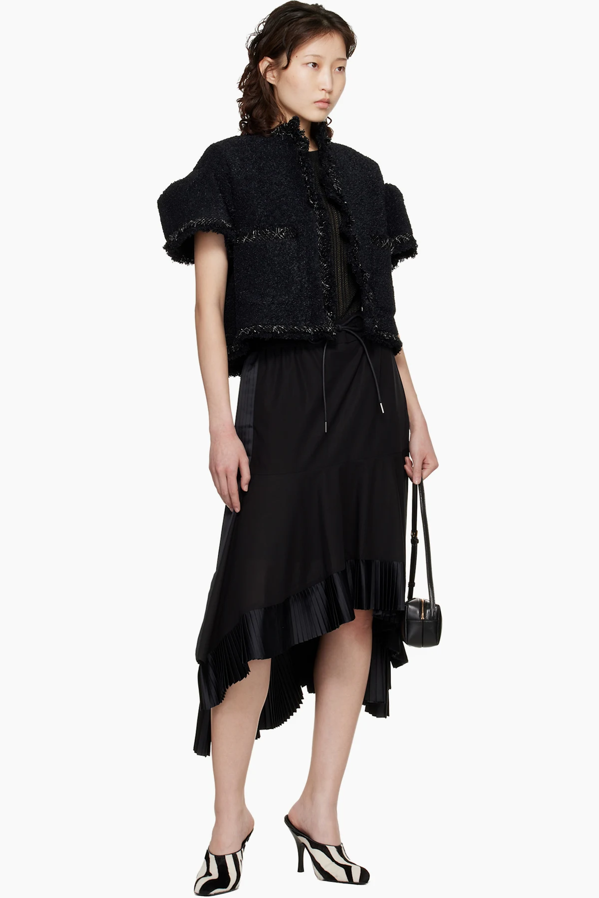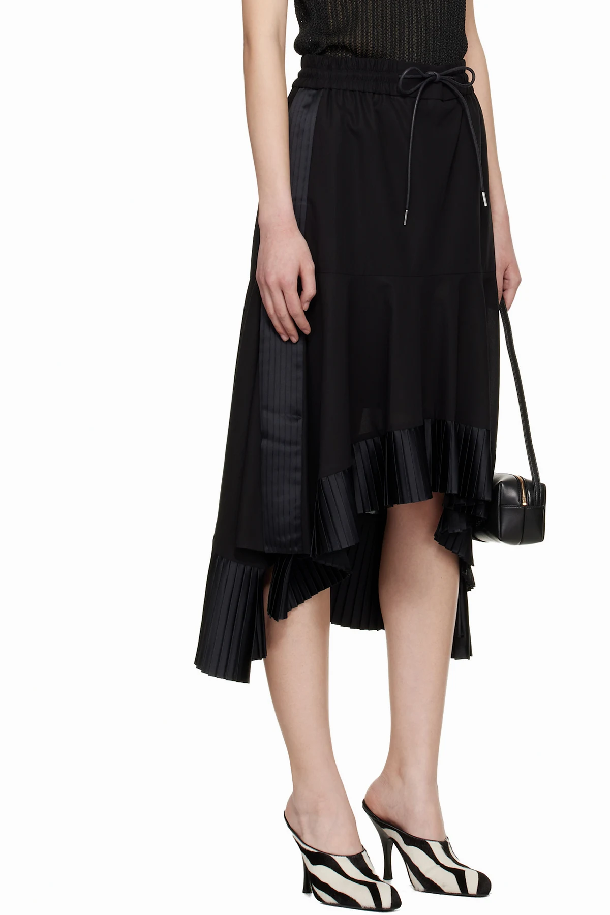 · Pleated sateen trim at hem and side seams