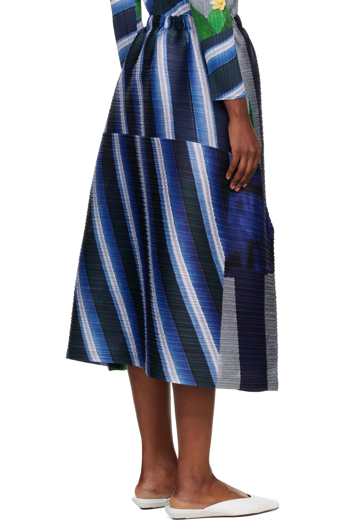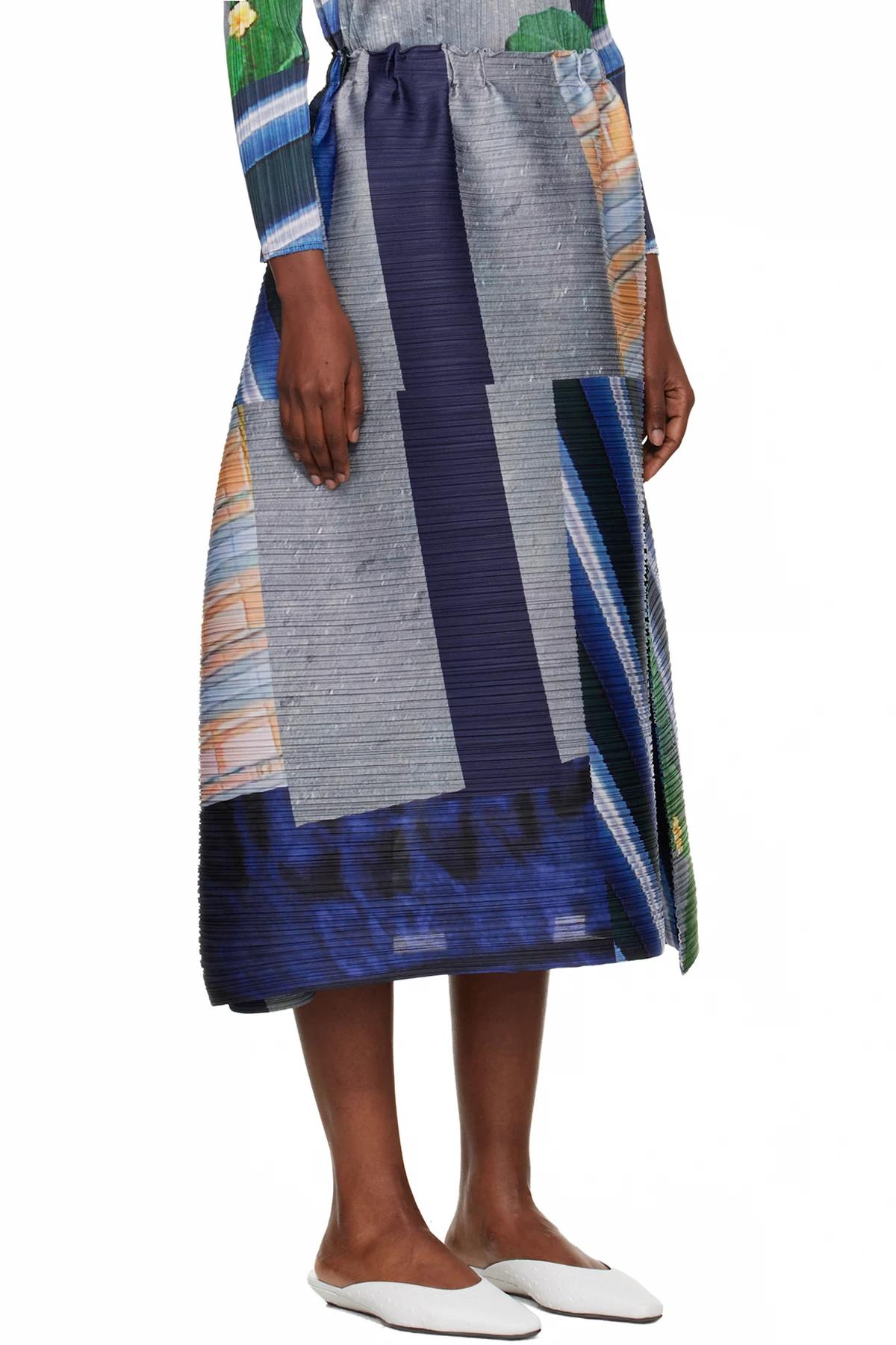 Garment-pleated tricot midi skirt.