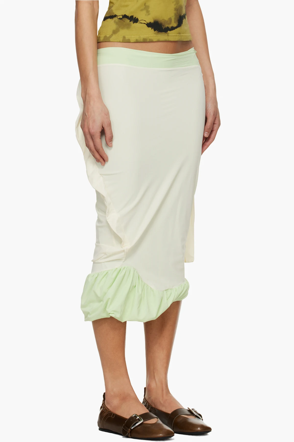 Green & Off-White Twisted Pencil Midi Skirt