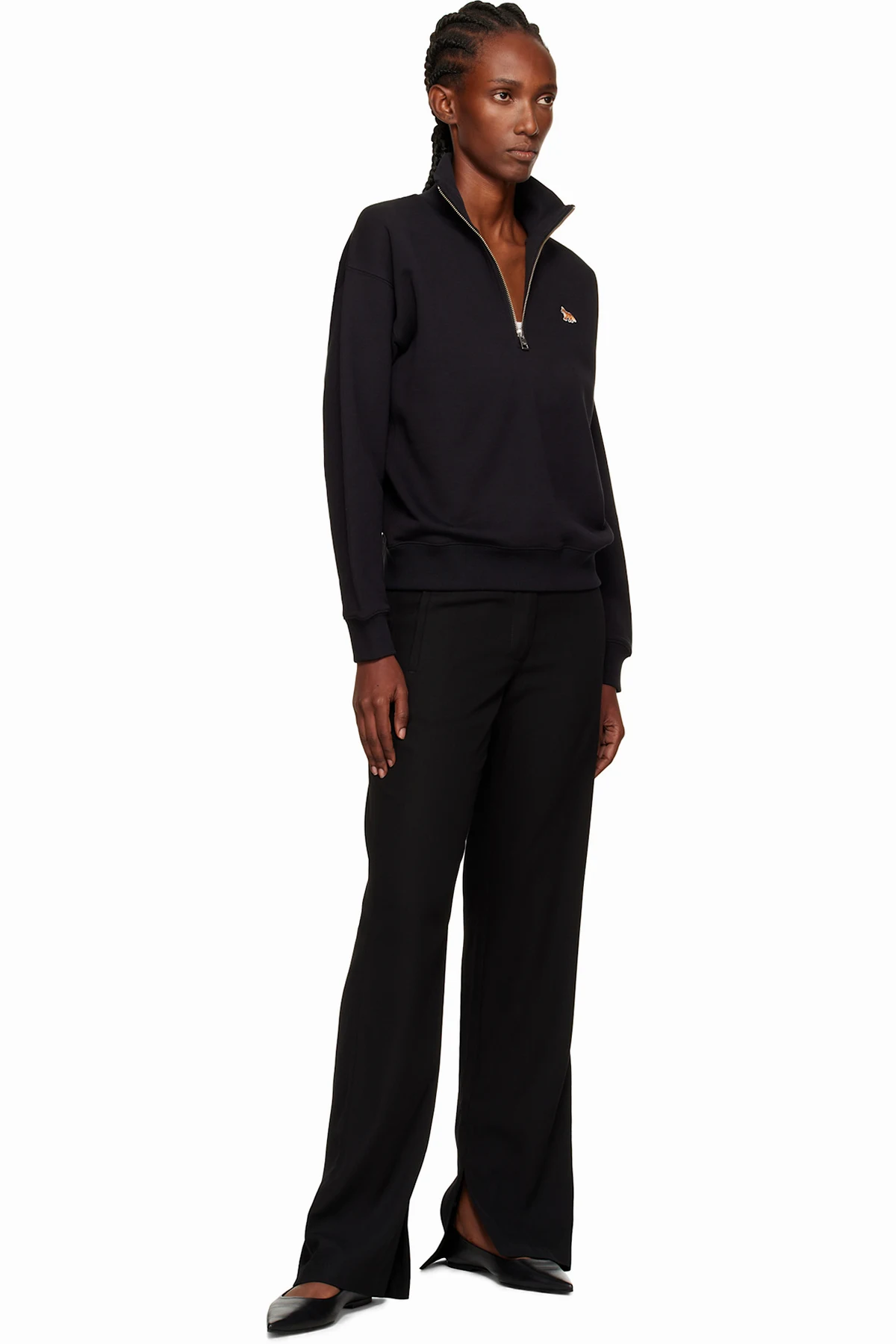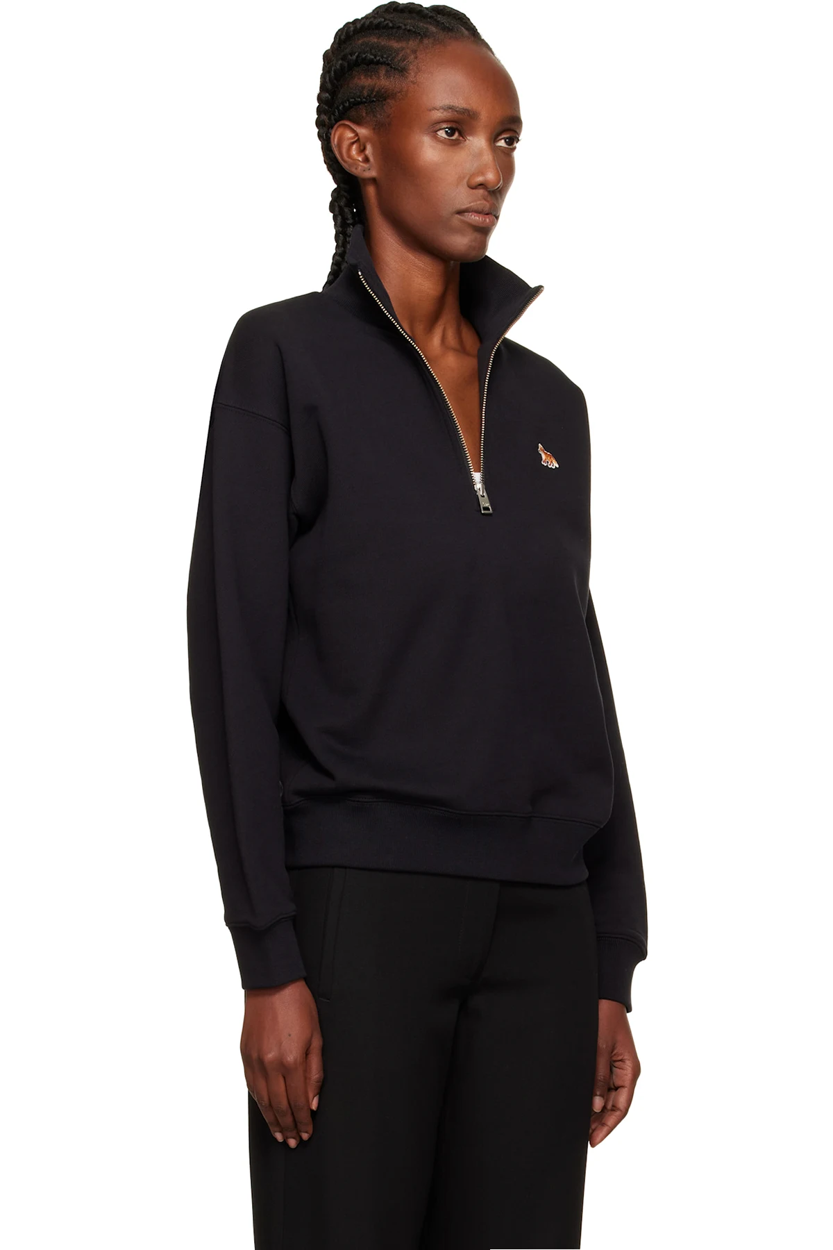 Black Half Zip Baby Fox Patch Sweatshirt