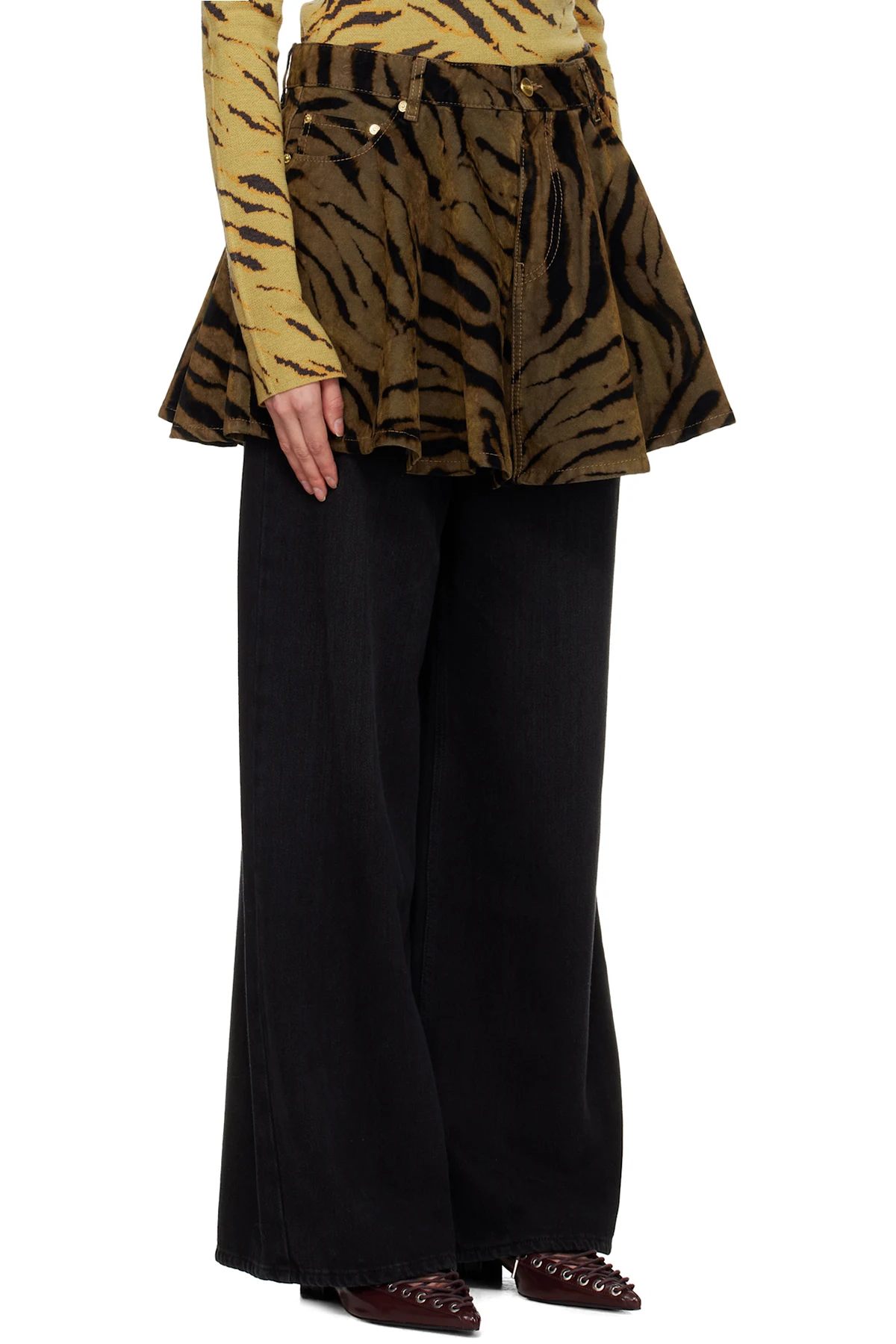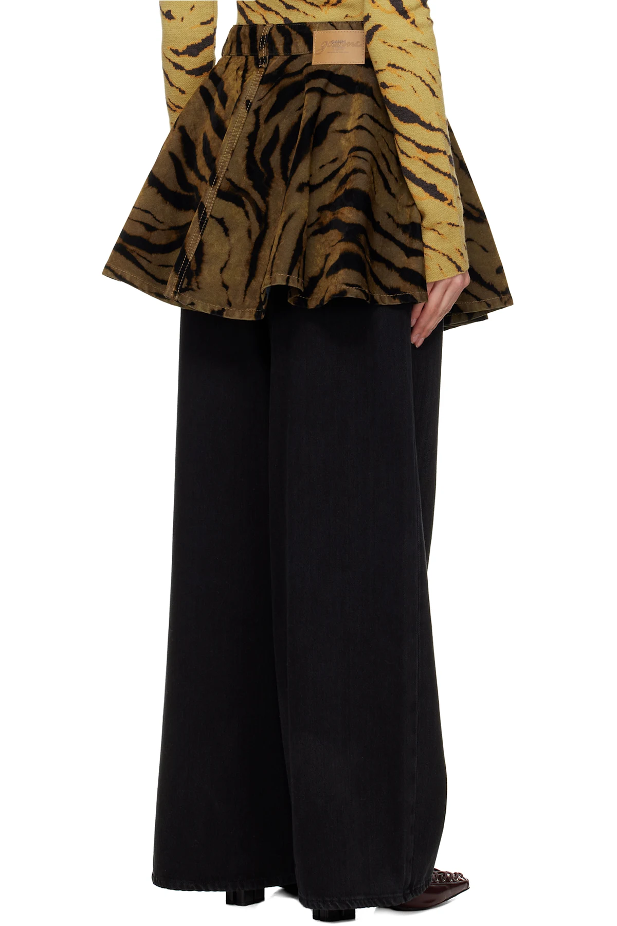 Khaki & Black Printed Flocked Denim Miniskirt