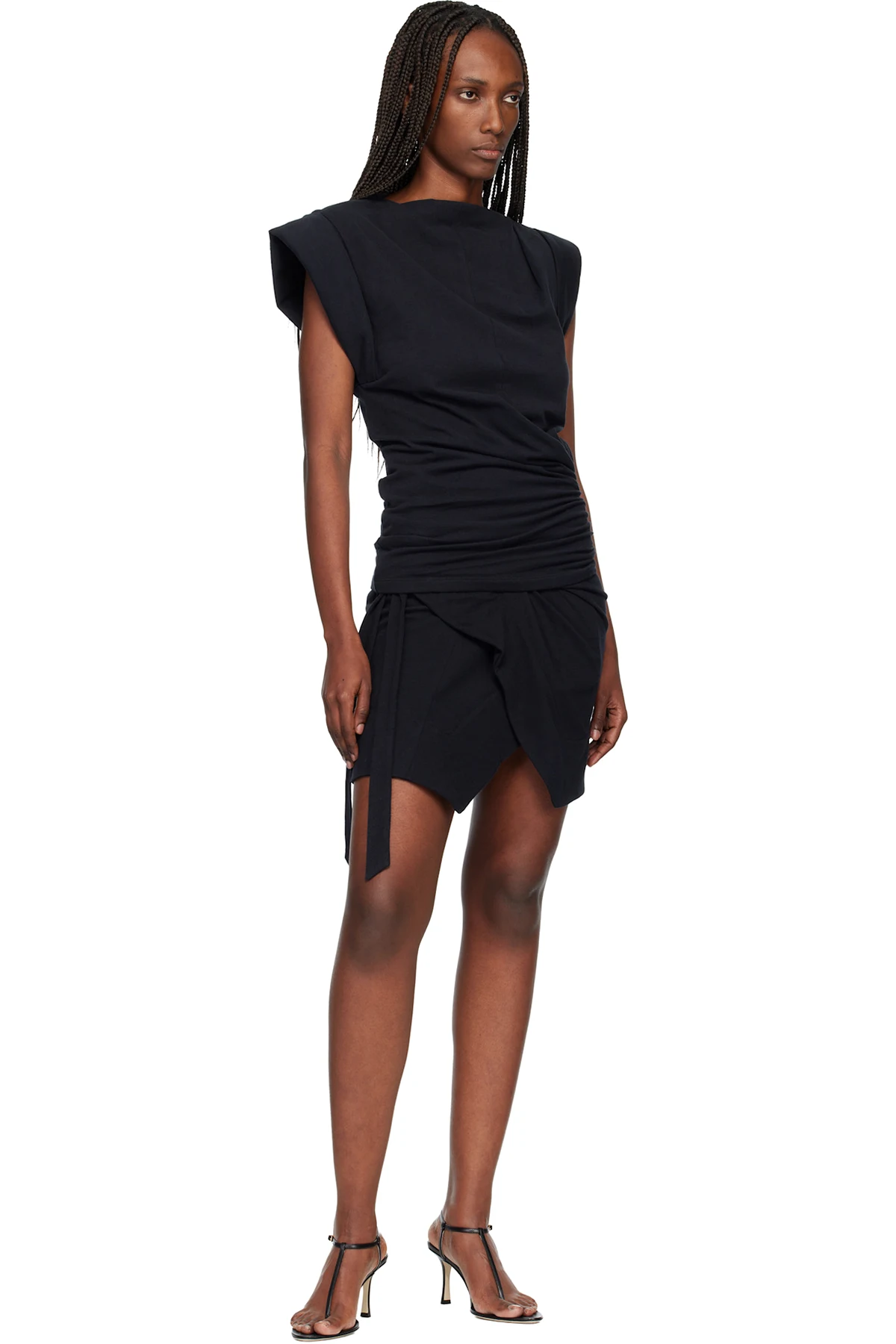 Navy Asymmetrical Bow & Ruffle Miniskirt