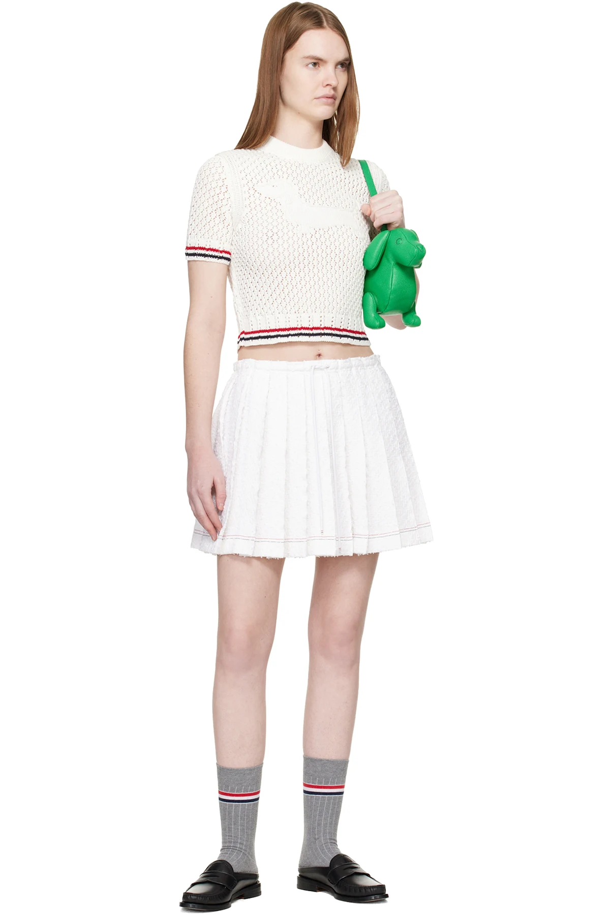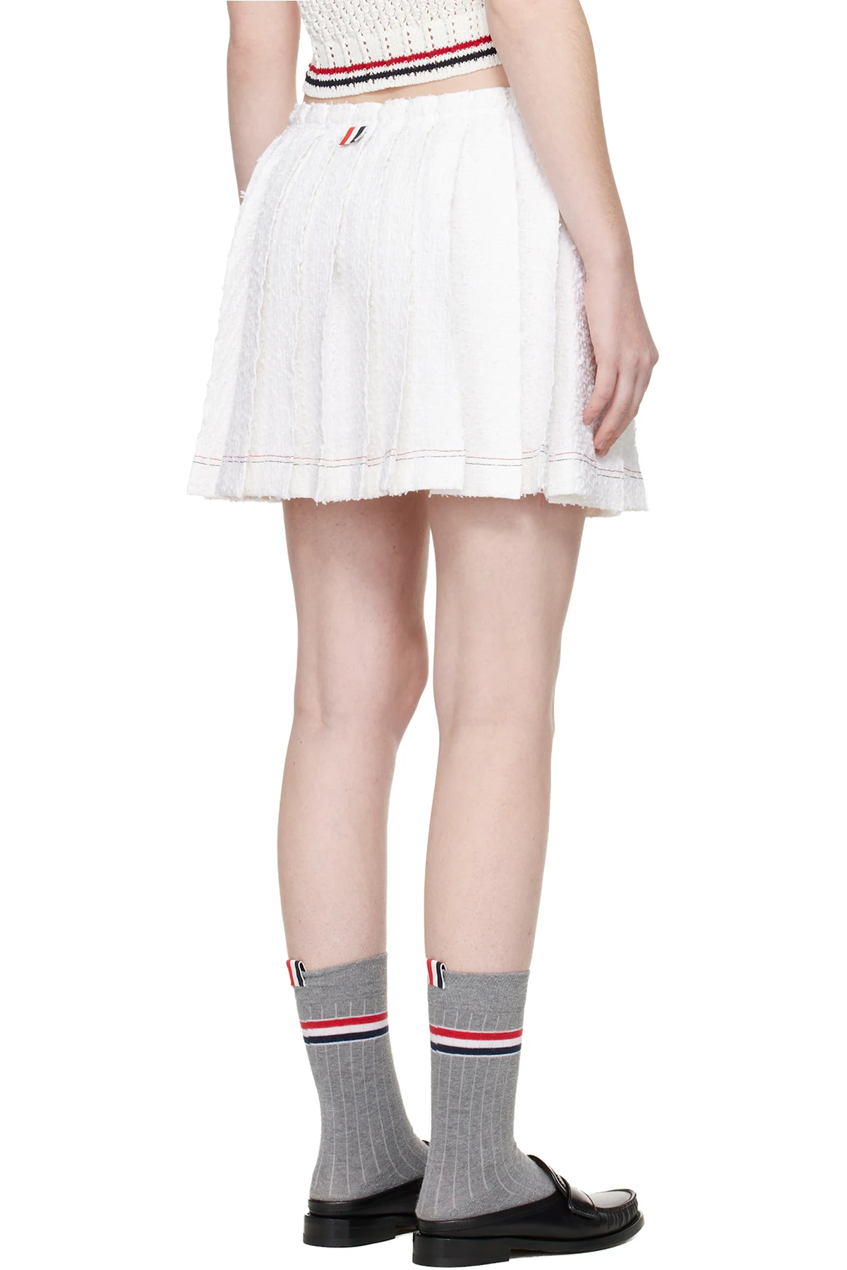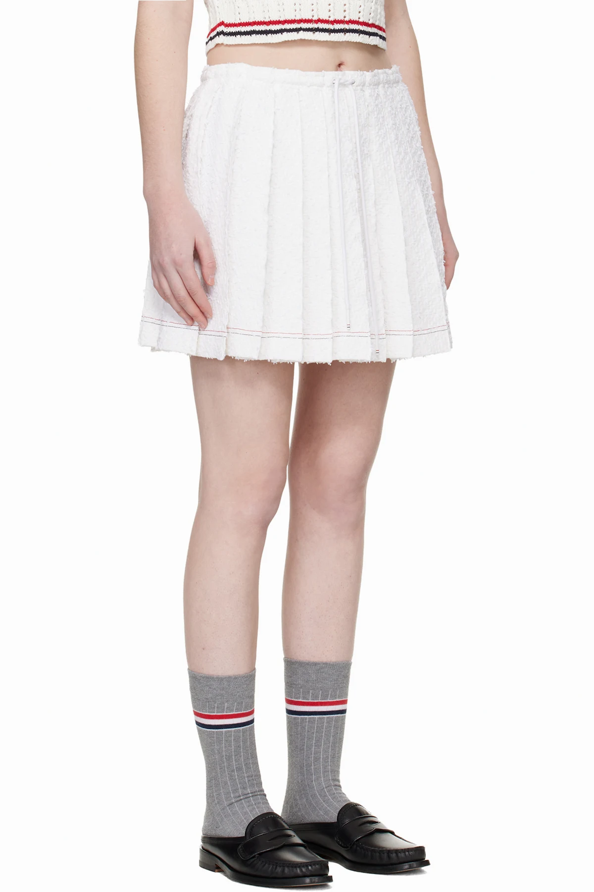 White Eyelash Tweed Drawstring Pleated Miniskirt
