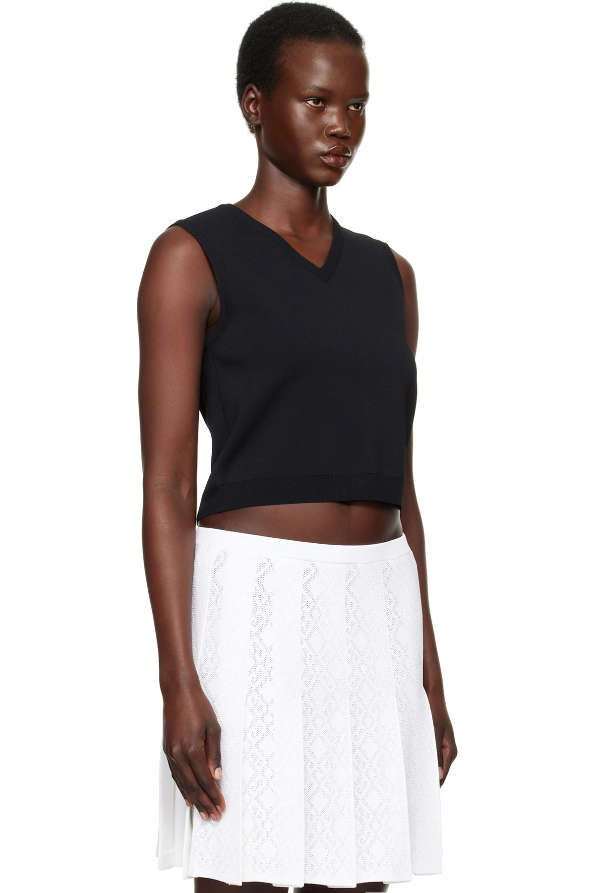 Knit stretch viscose- and nylon-blend vest.
