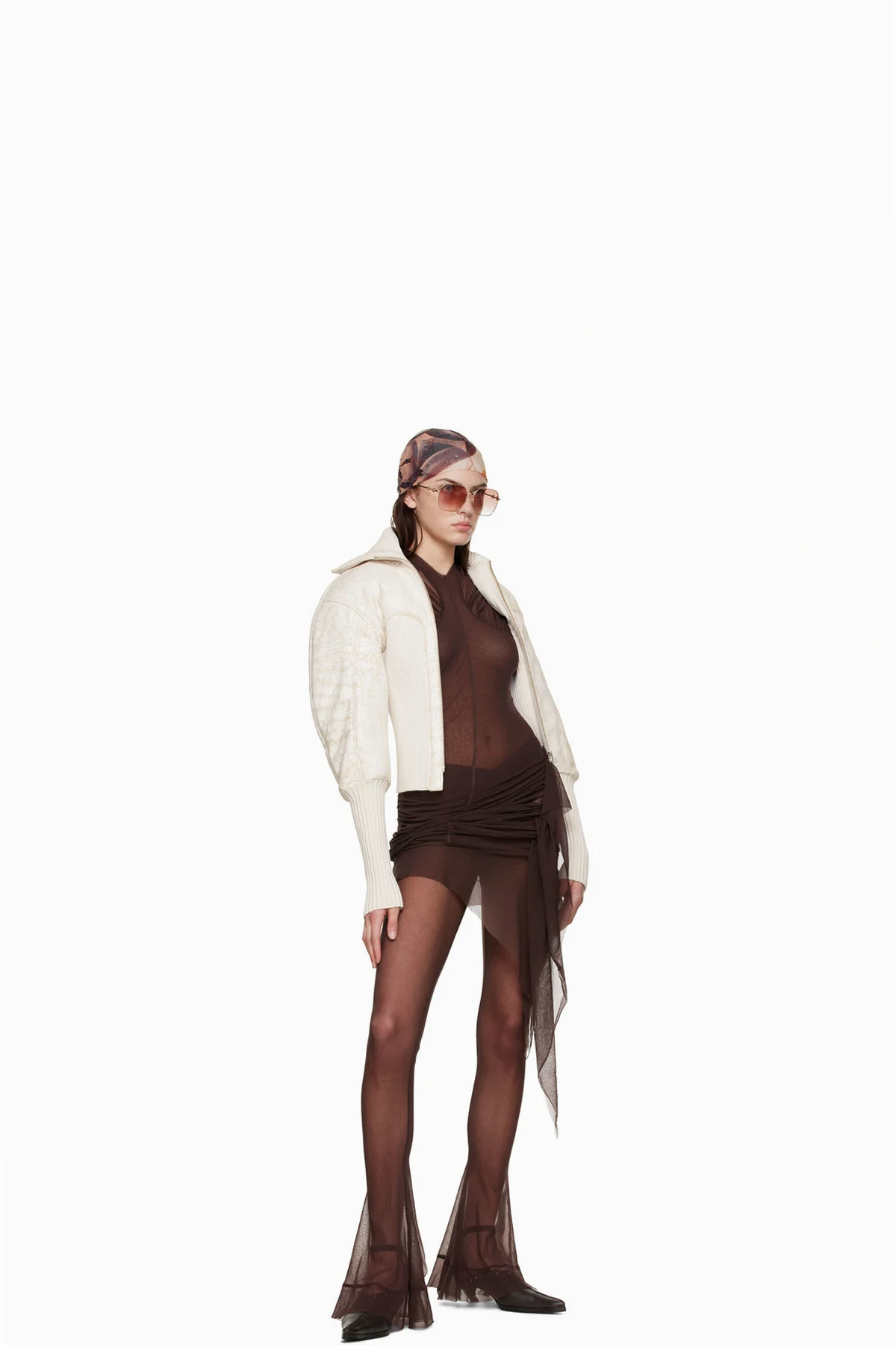 Body 1: 100% lambskin. Body 2: 50% viscose, 50% elastane. Fill: 100% recycled polyester. Lining 1: 52% viscose, 48% cotton.