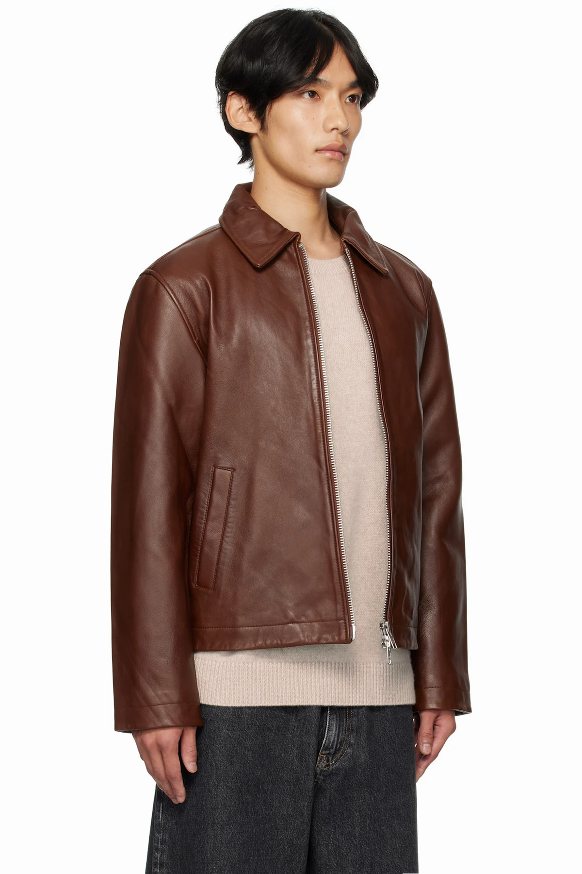 Grained lambskin jacket.
