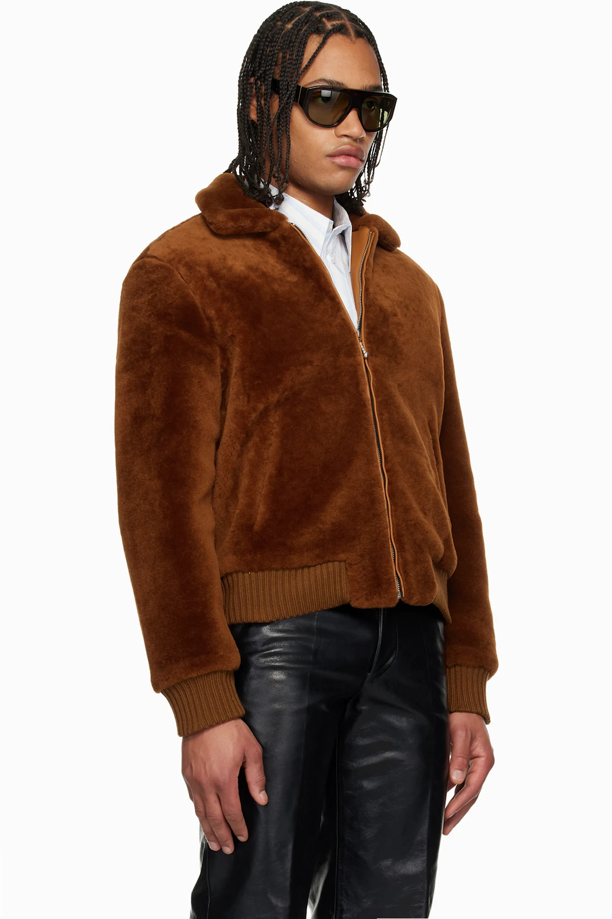 Brown Zip Shearling Jacket