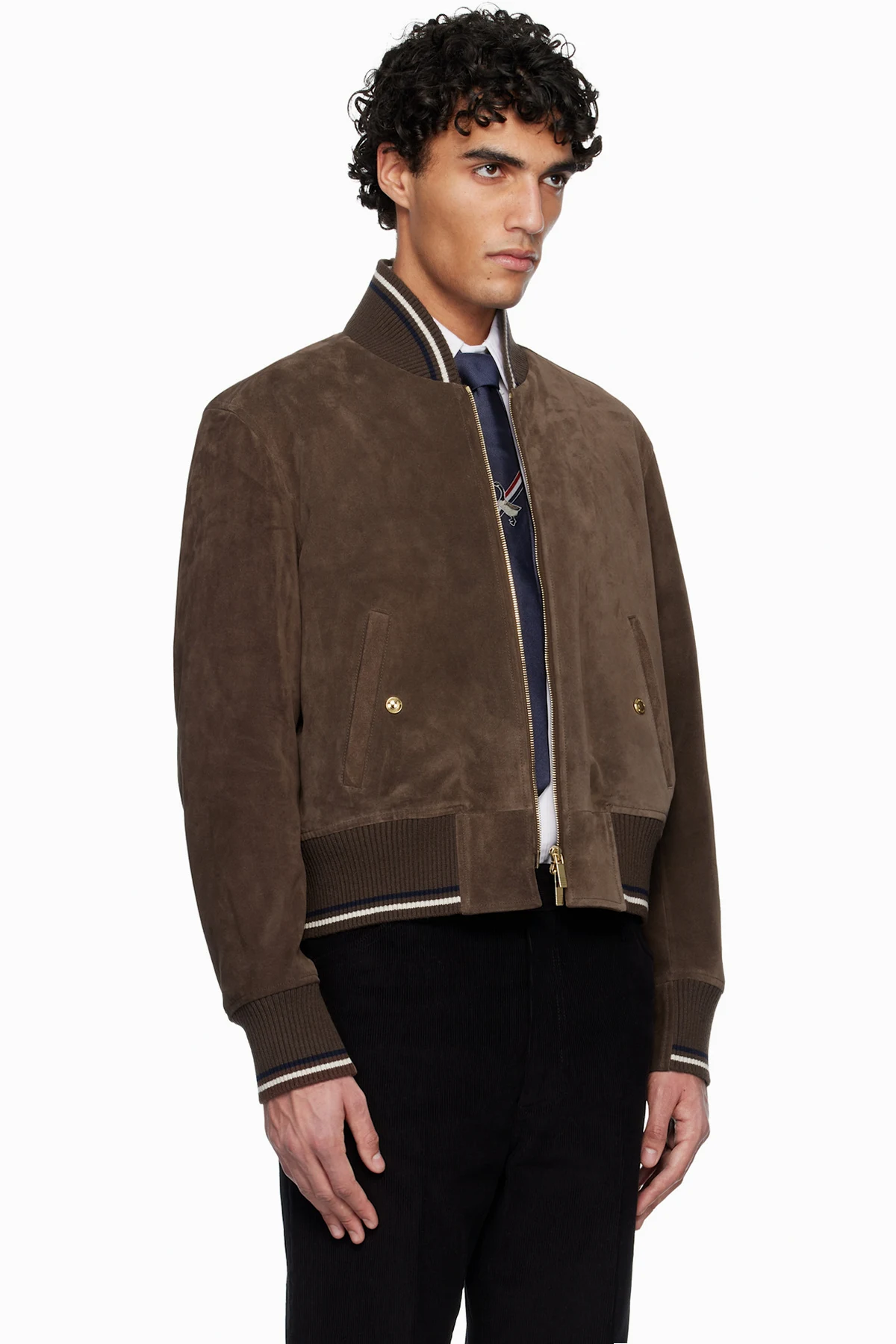 Calfskin suede jacket.