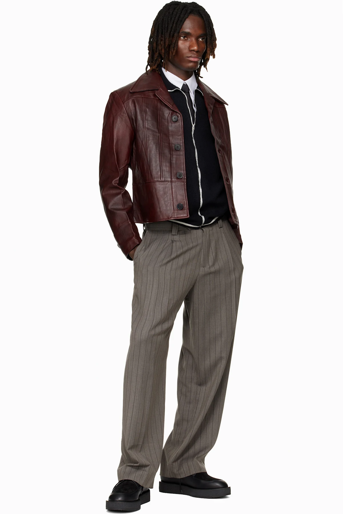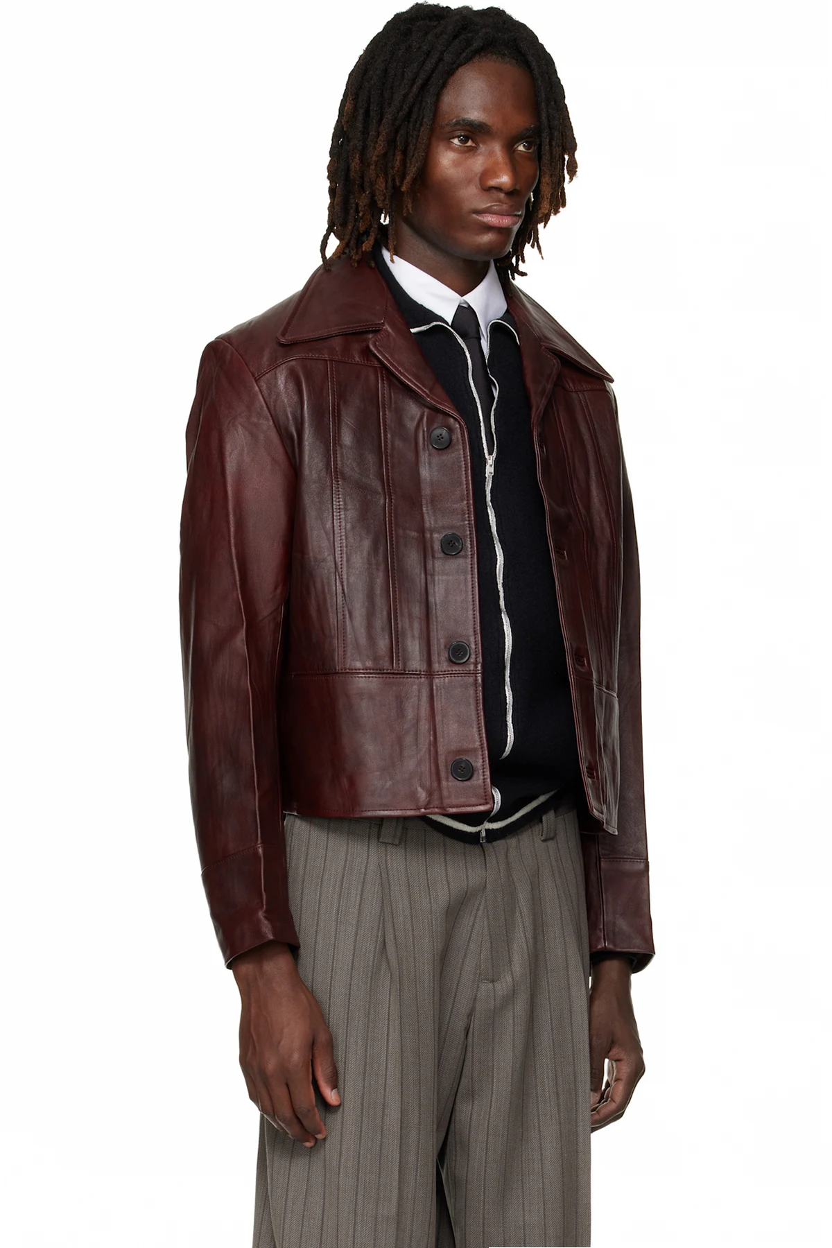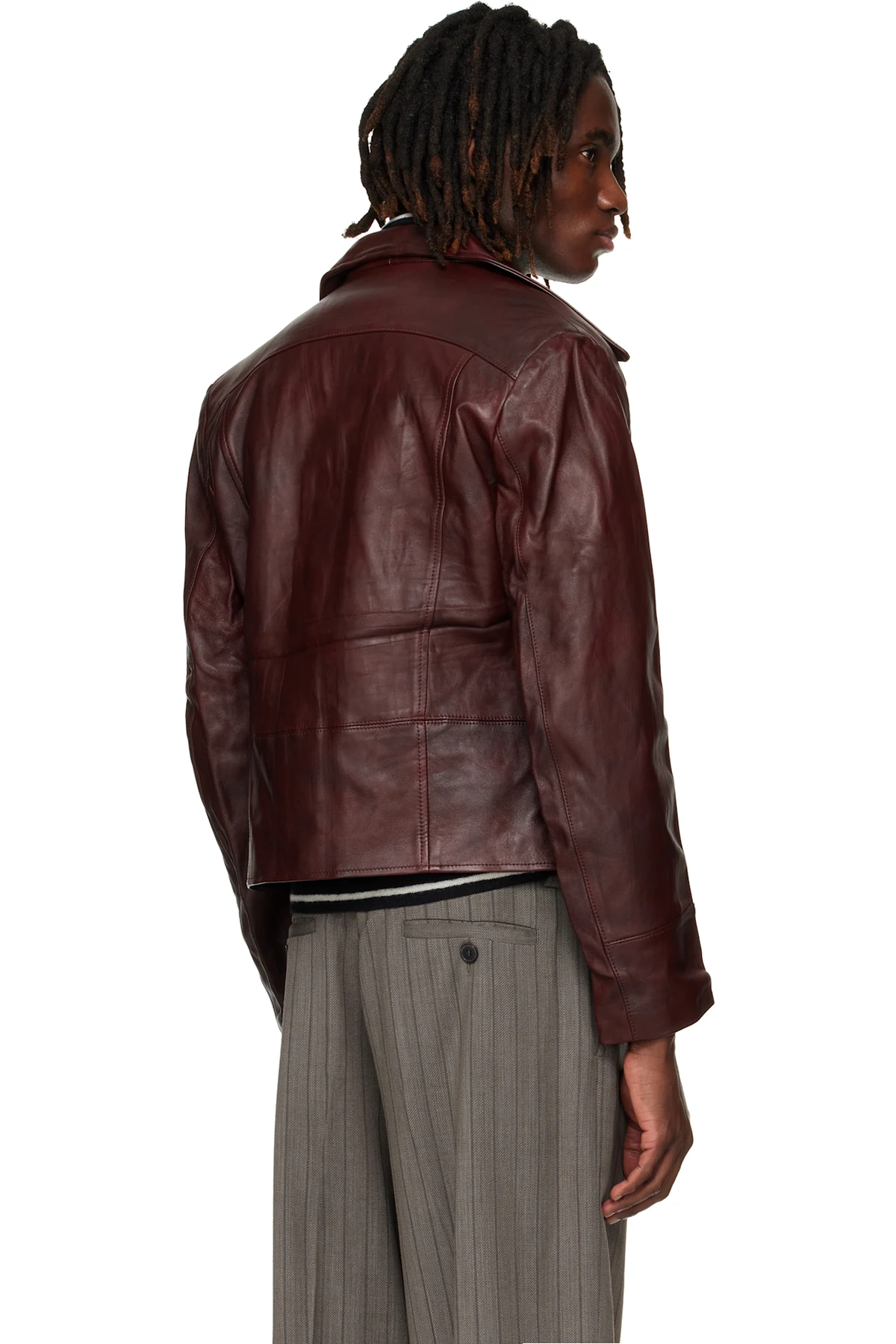 Burgundy Carnaby Funnel Neck Leather Jacket