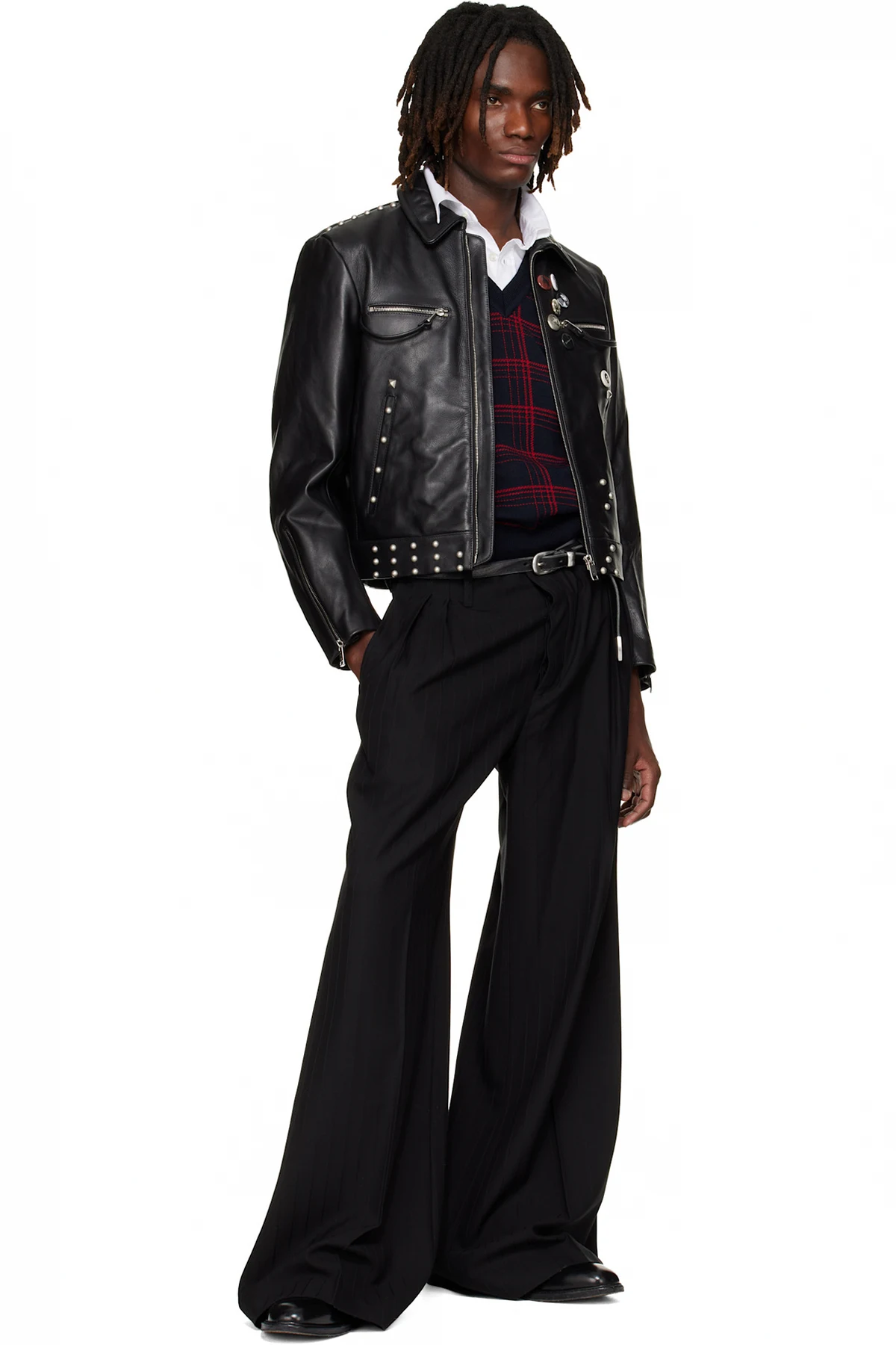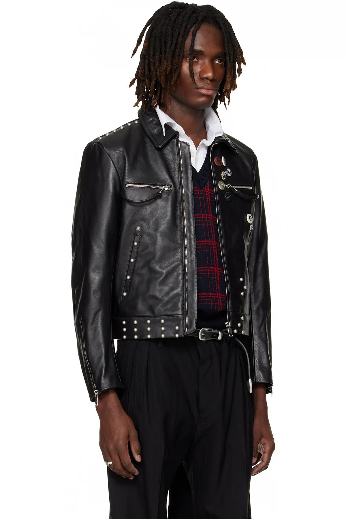 Grained leather jacket.