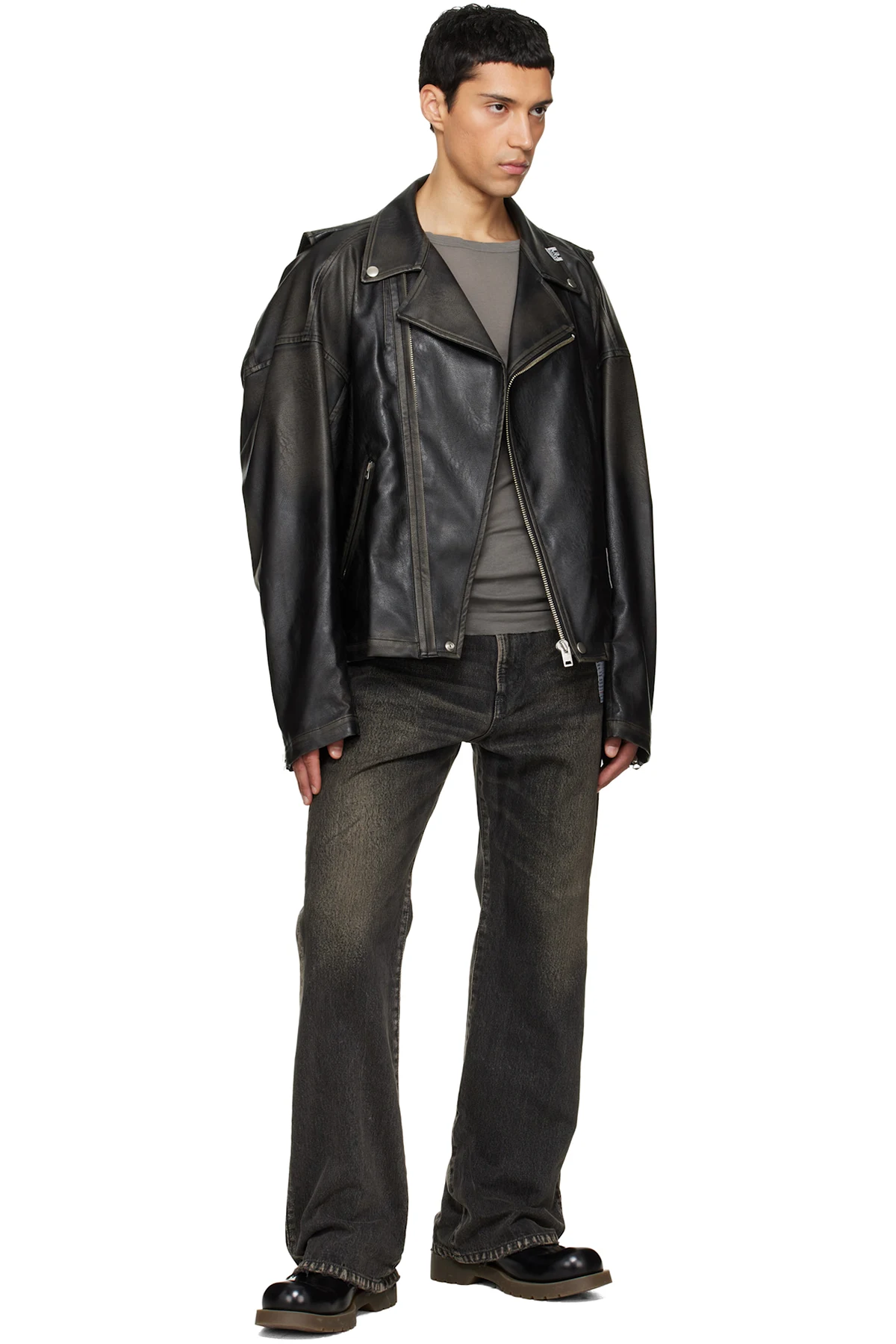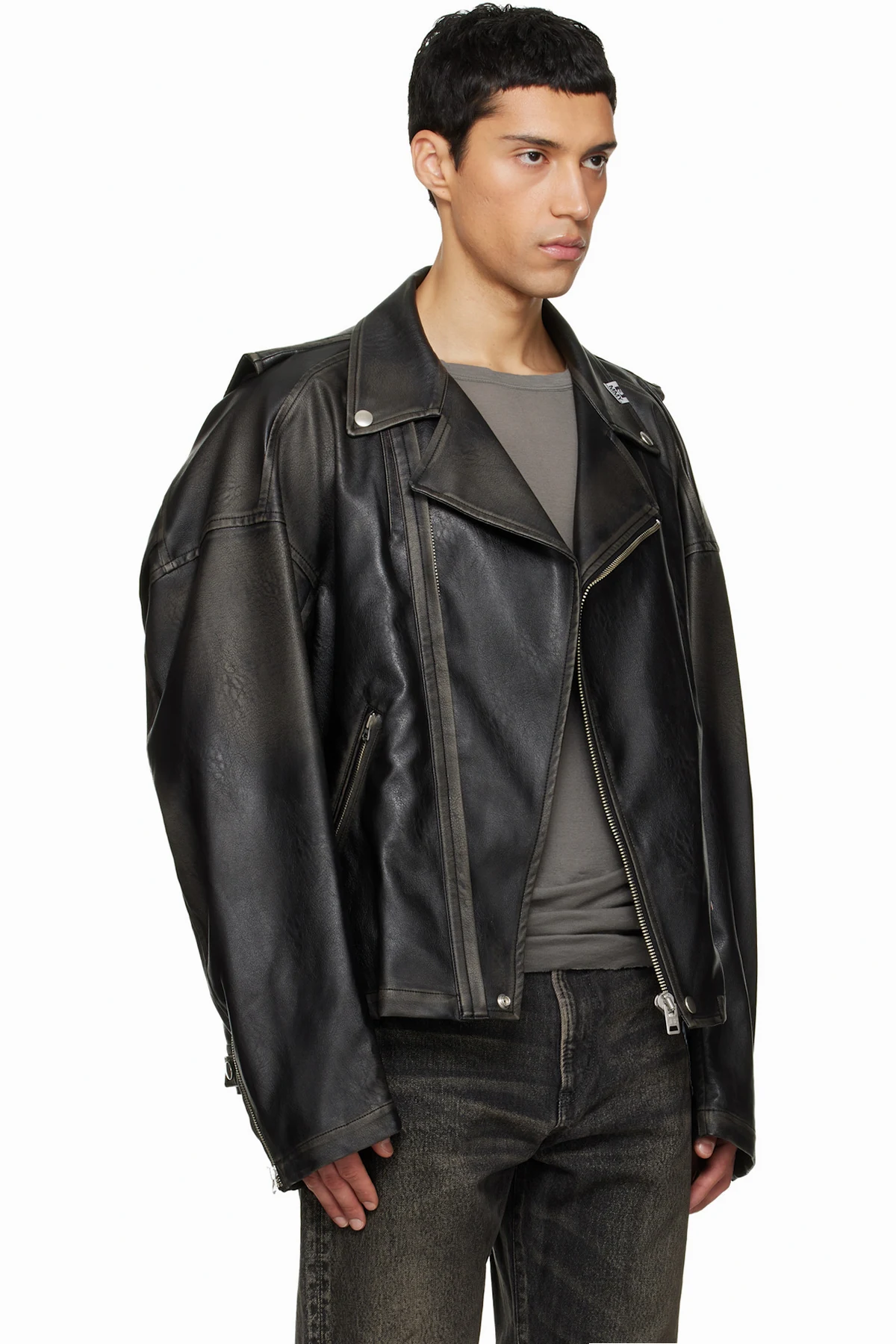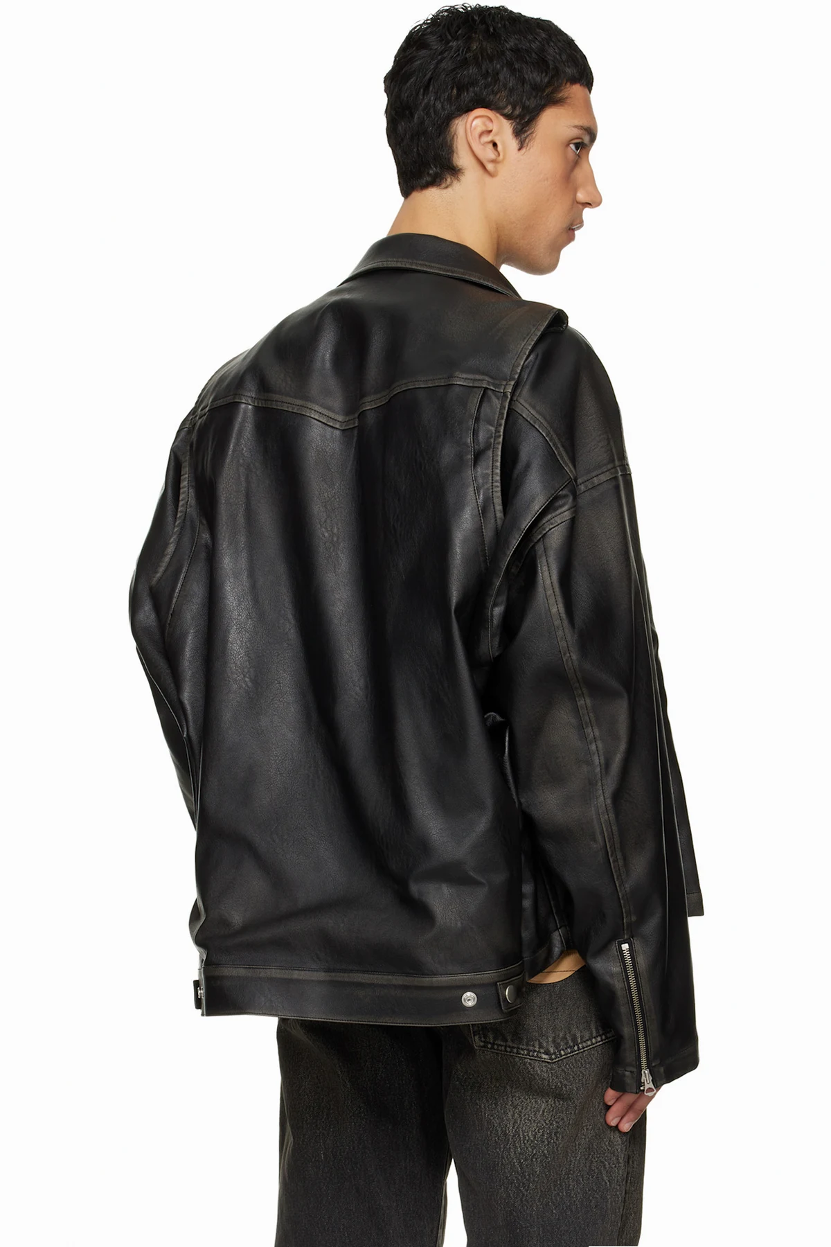 Grained faux-leather jacket.