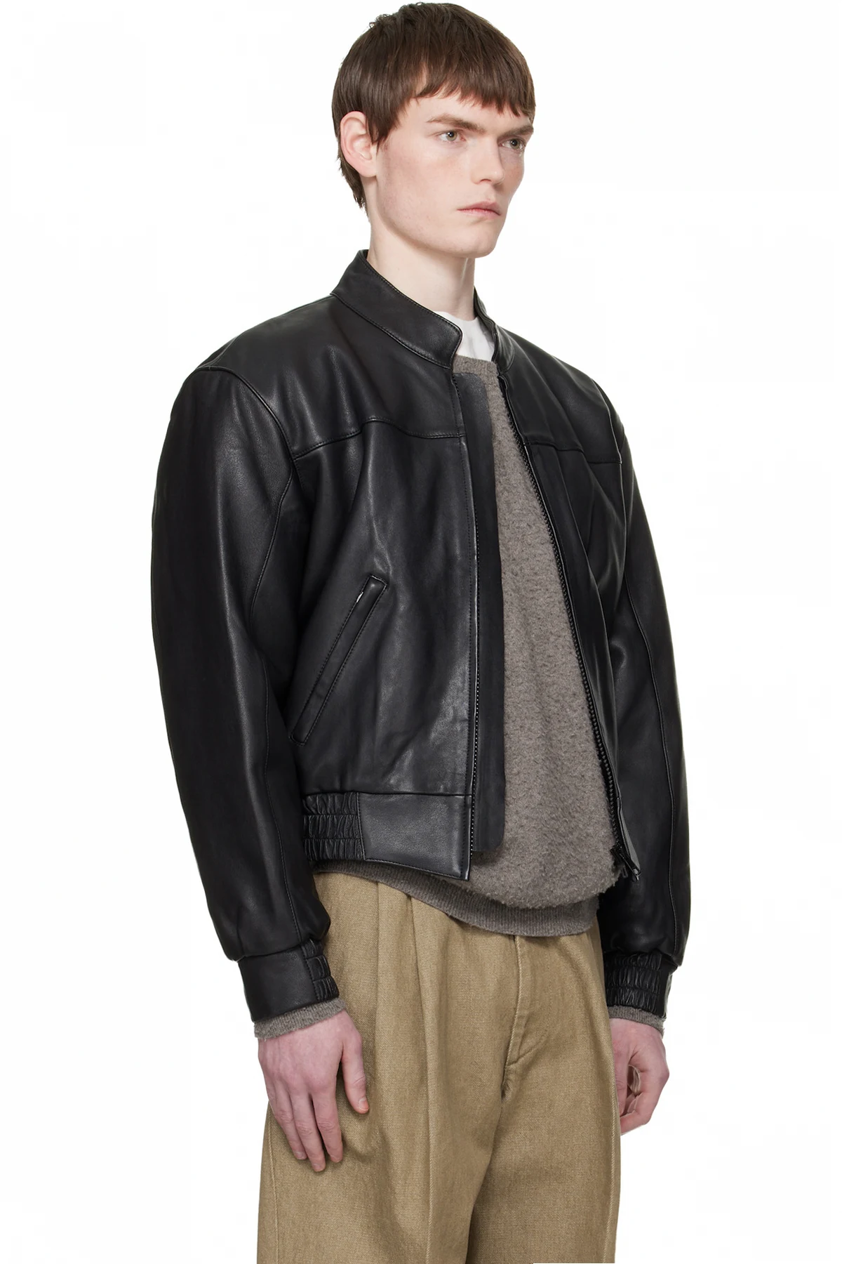 Burgundy Carnaby Funnel Neck Leather Jacket