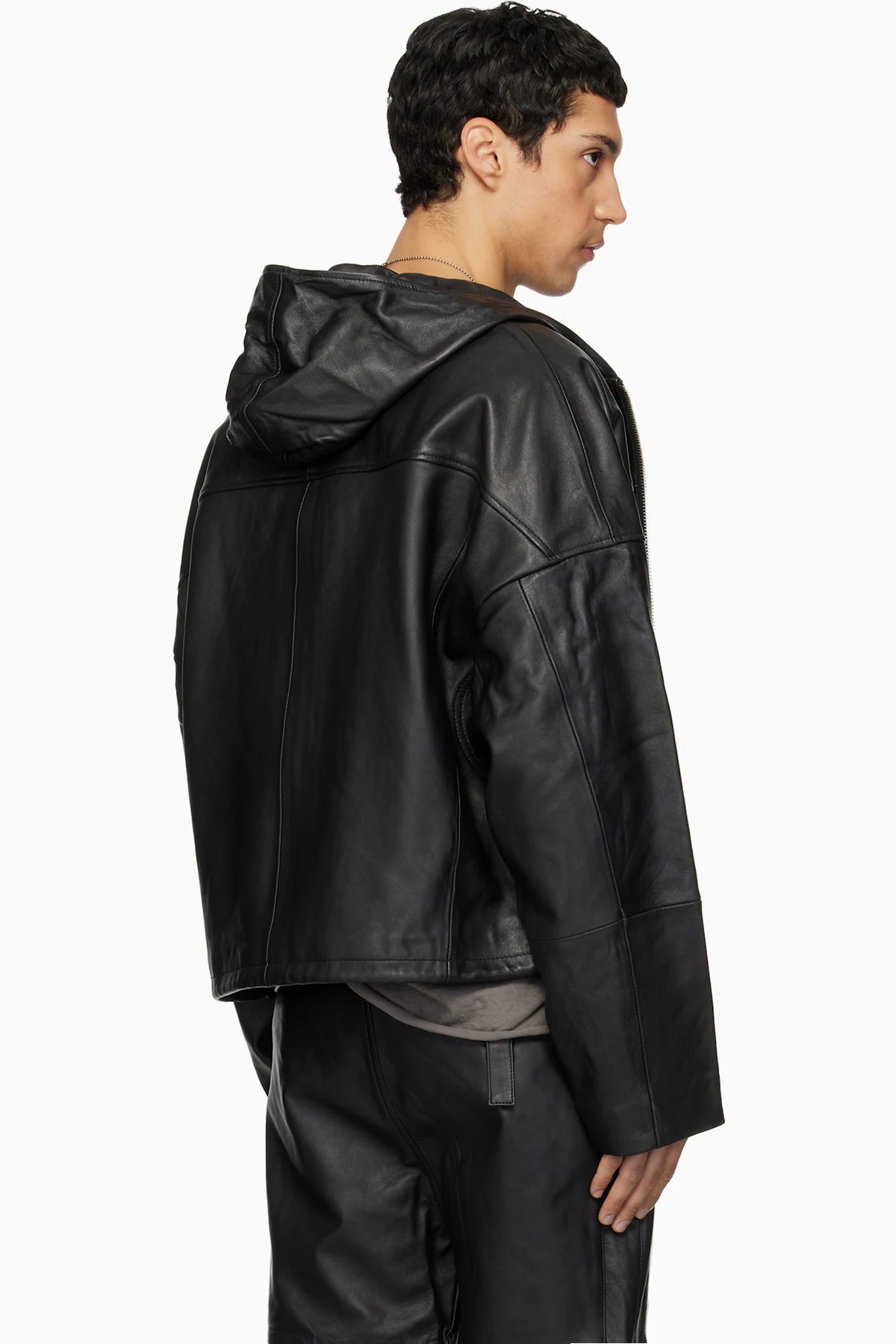 Upcycled grained lambskin hoodie.