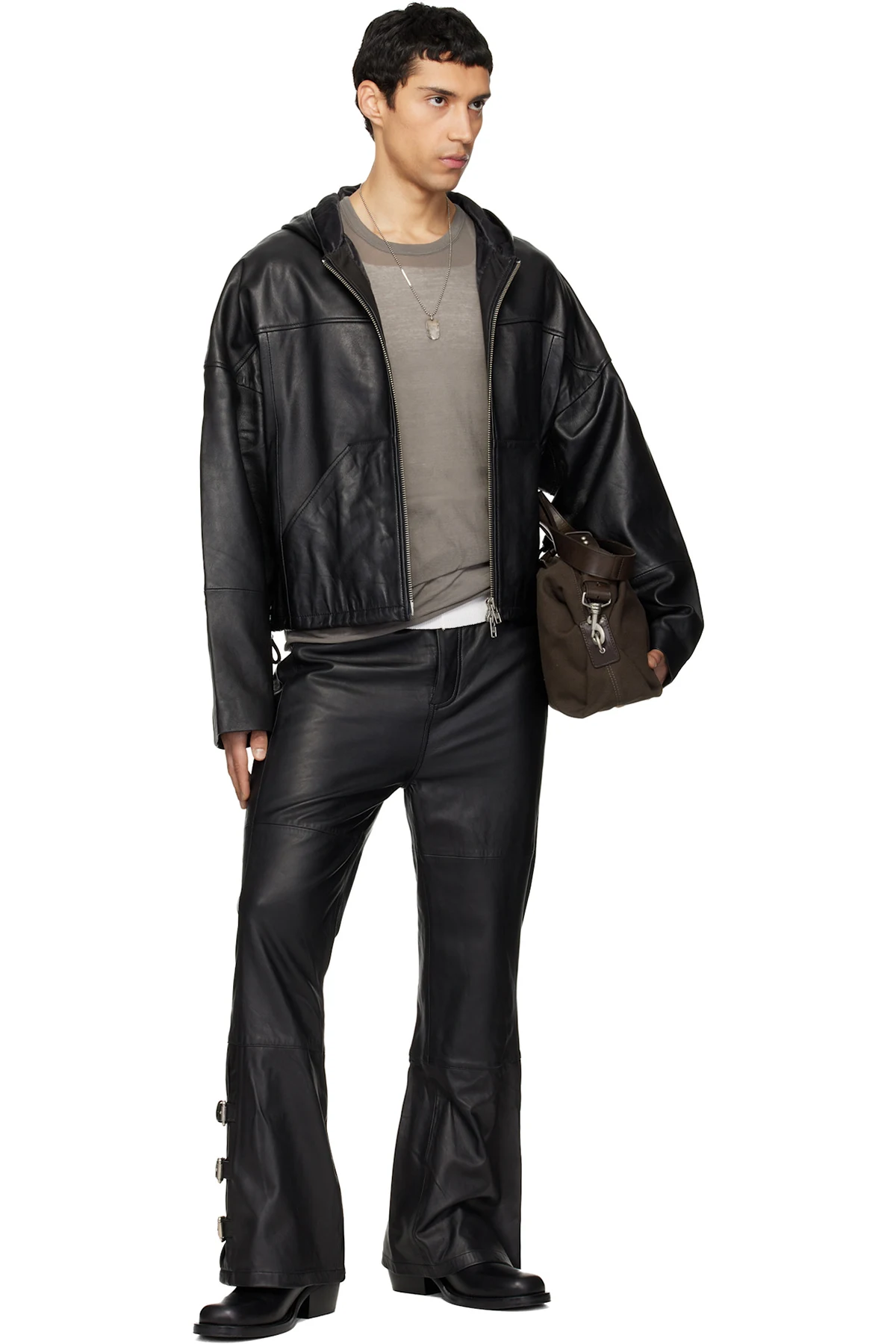 Black Hector Leather Hoodie