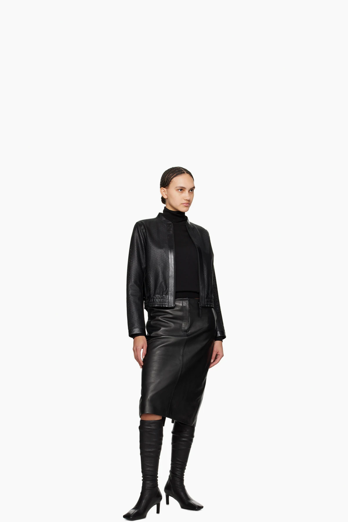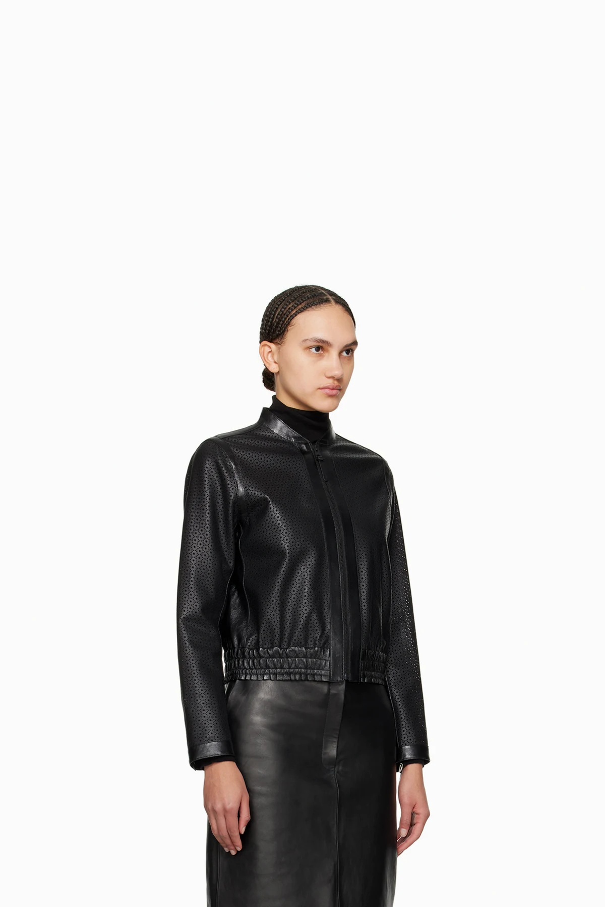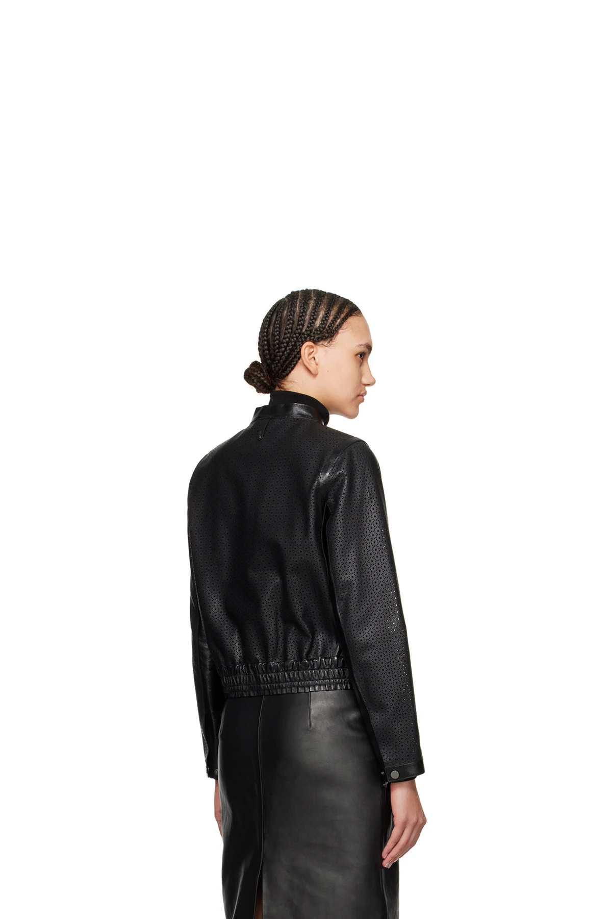 Grained sheepskin jacket. Perforated graphic pattern throughout.