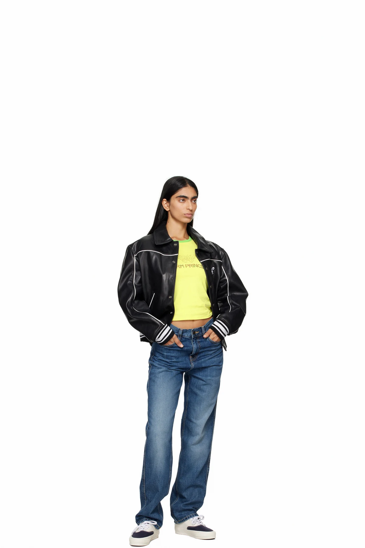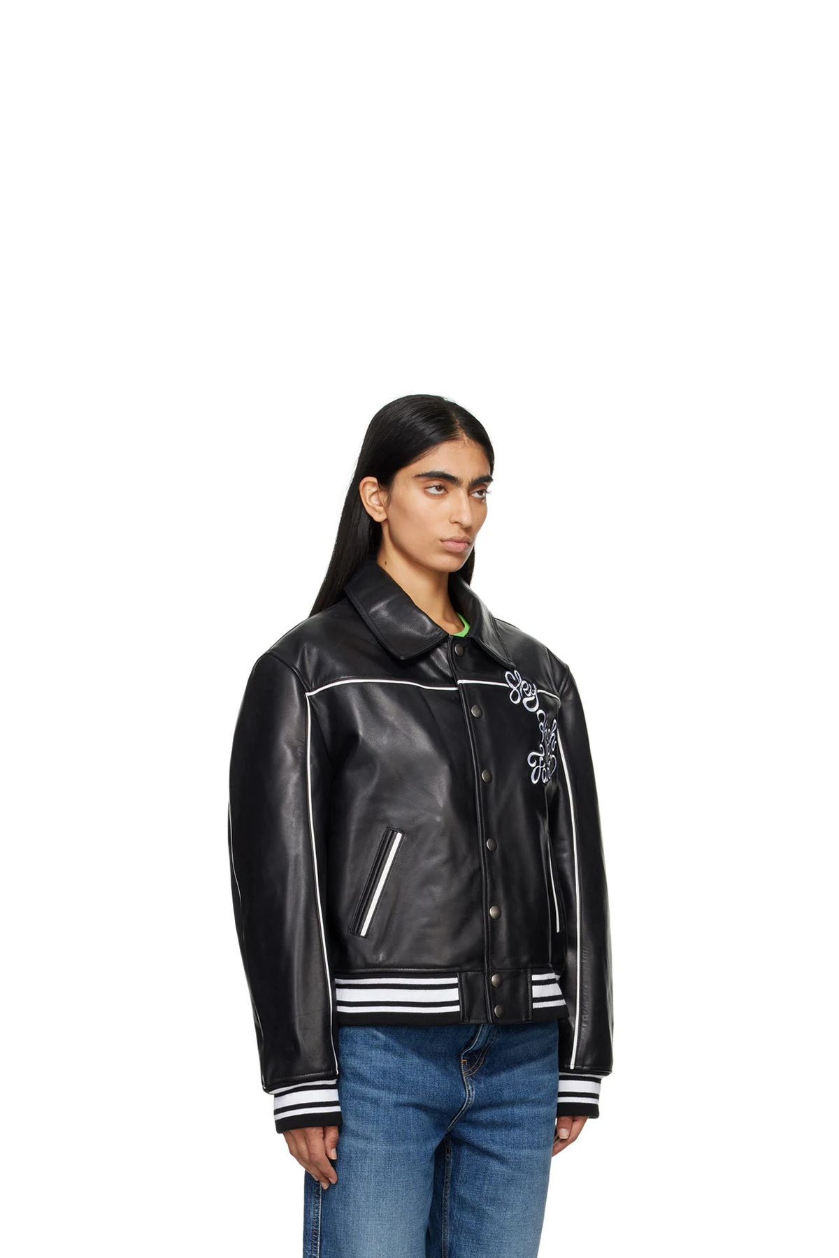 Body: 100% leather. Trim: 95% polyester, 5% elastane. Lining: 100% polyester.