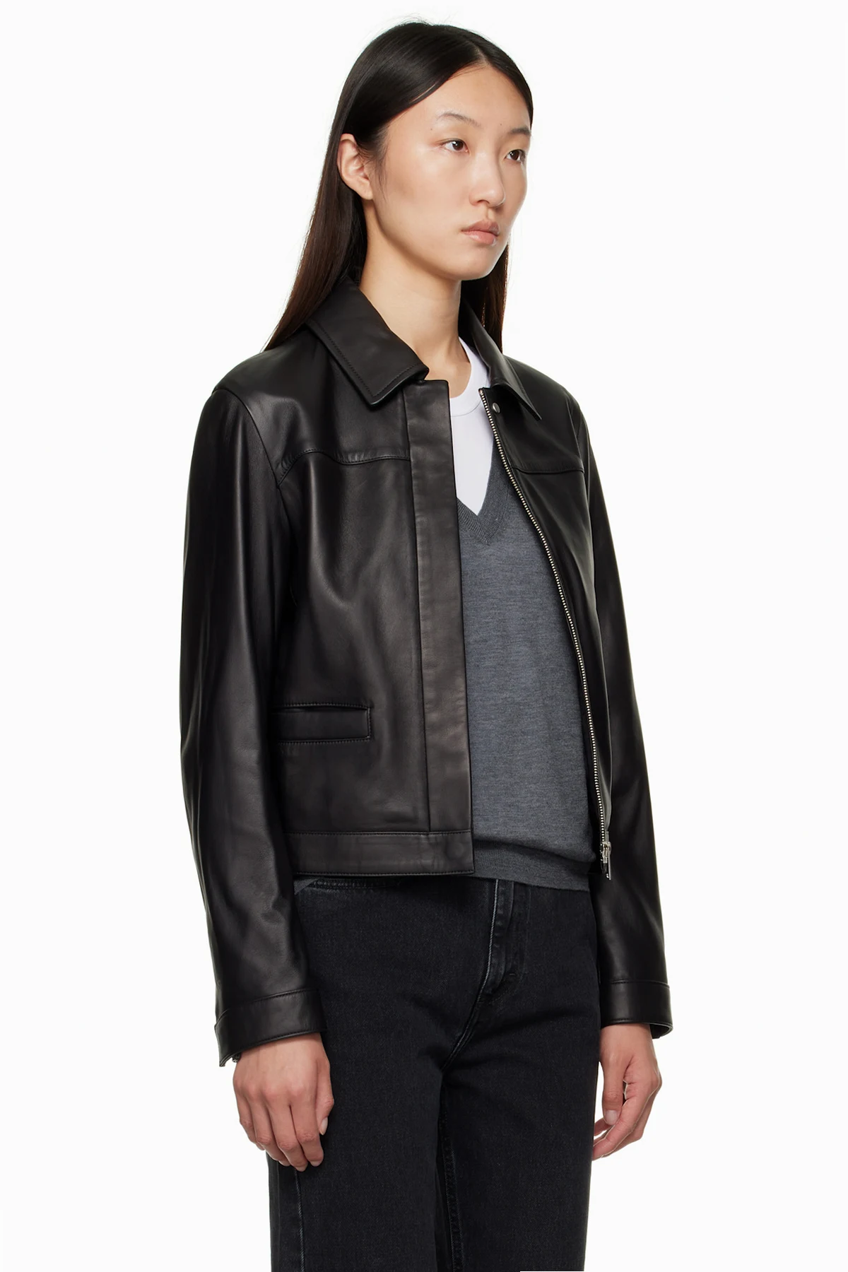 Buffed lambskin jacket.