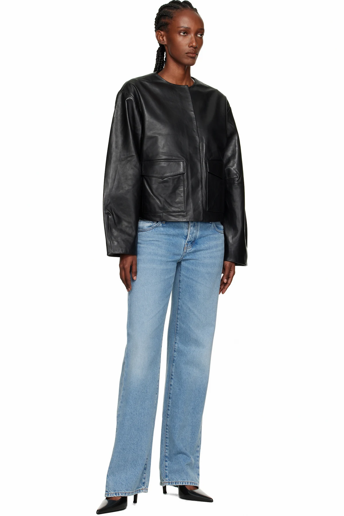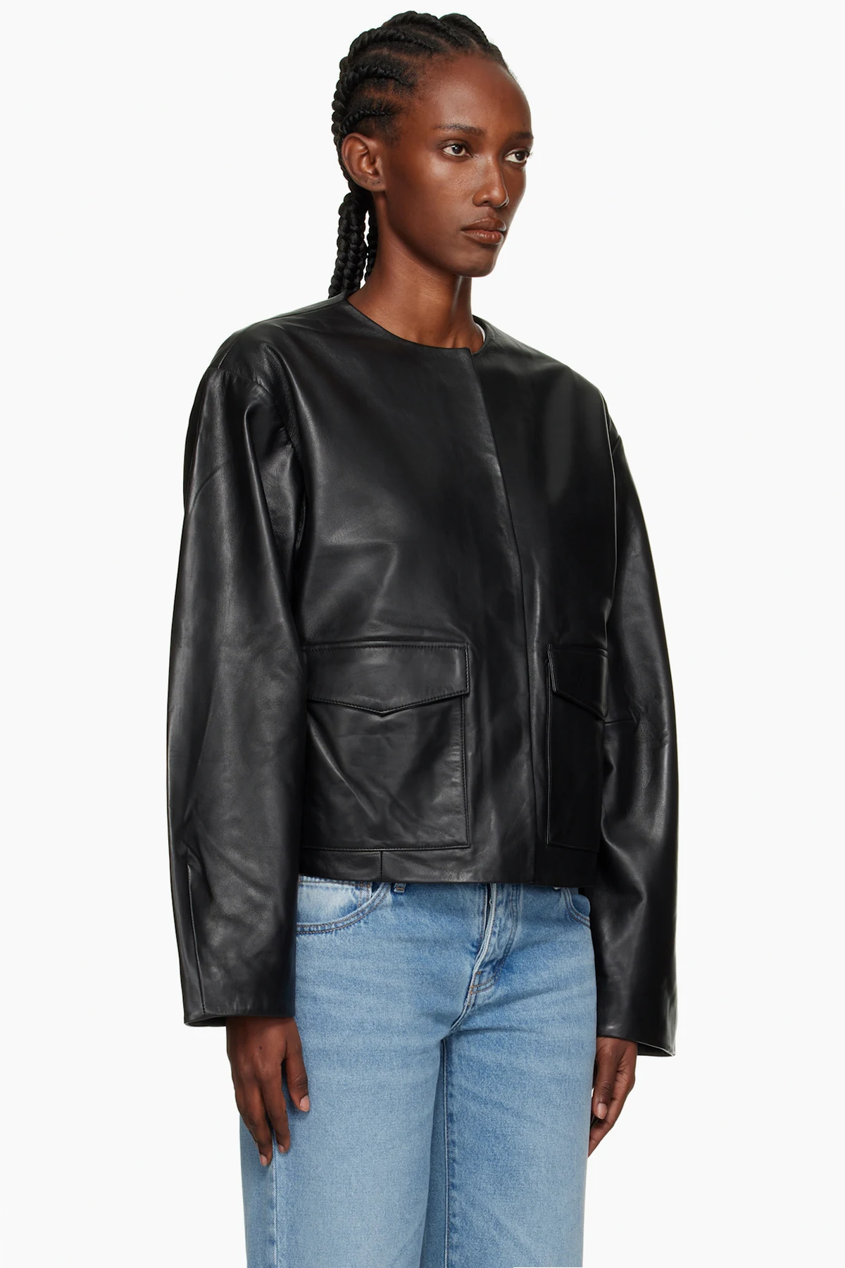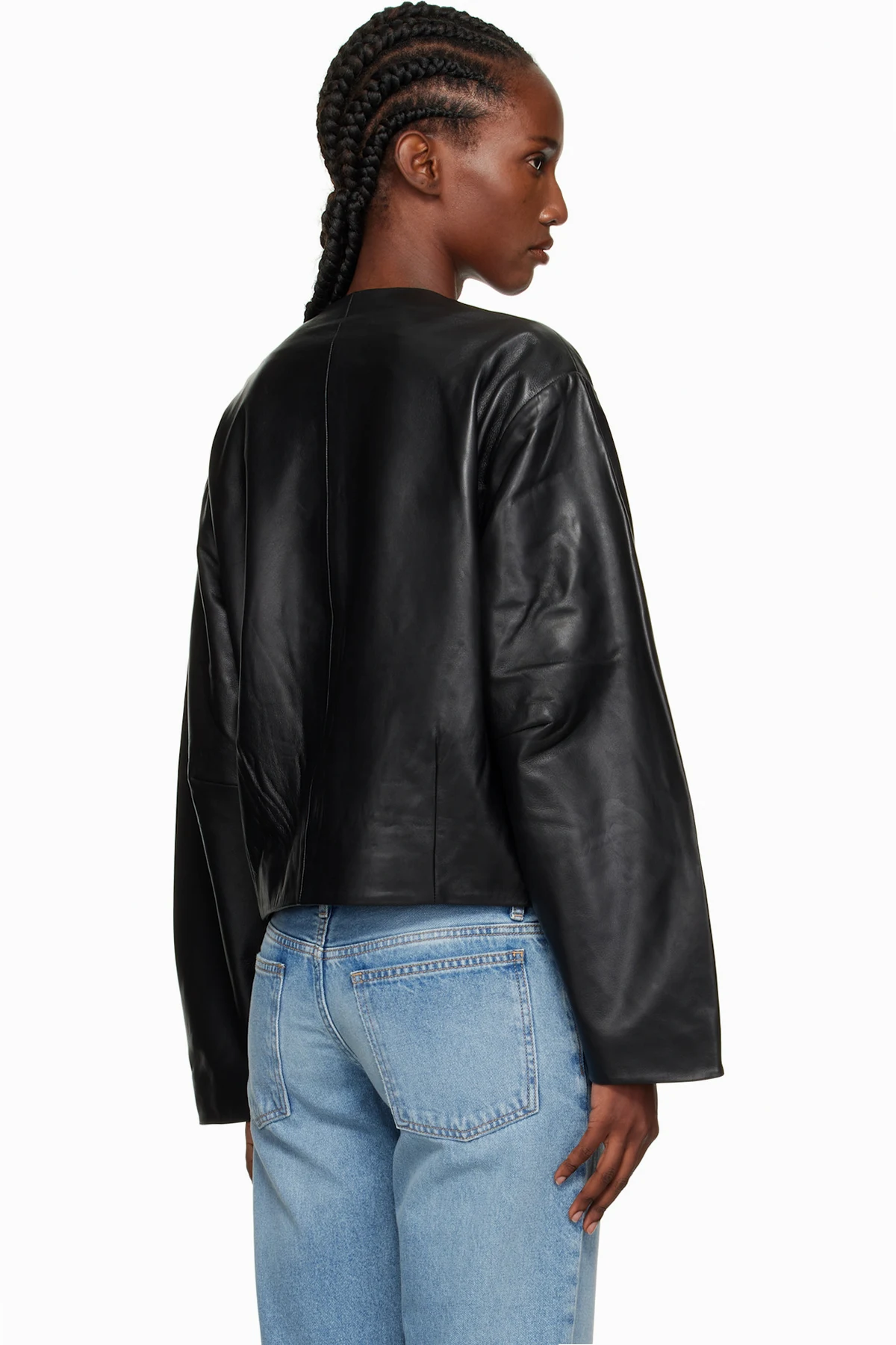 Black Utility Cocoon Leather Jacket