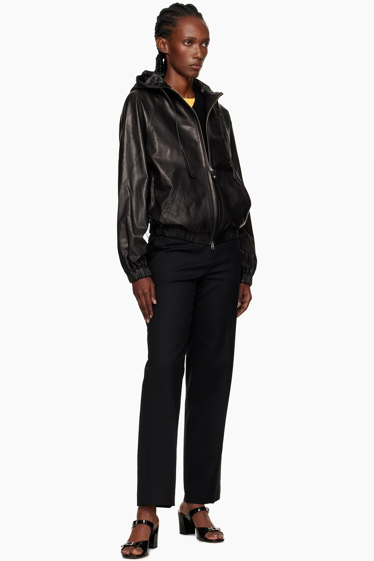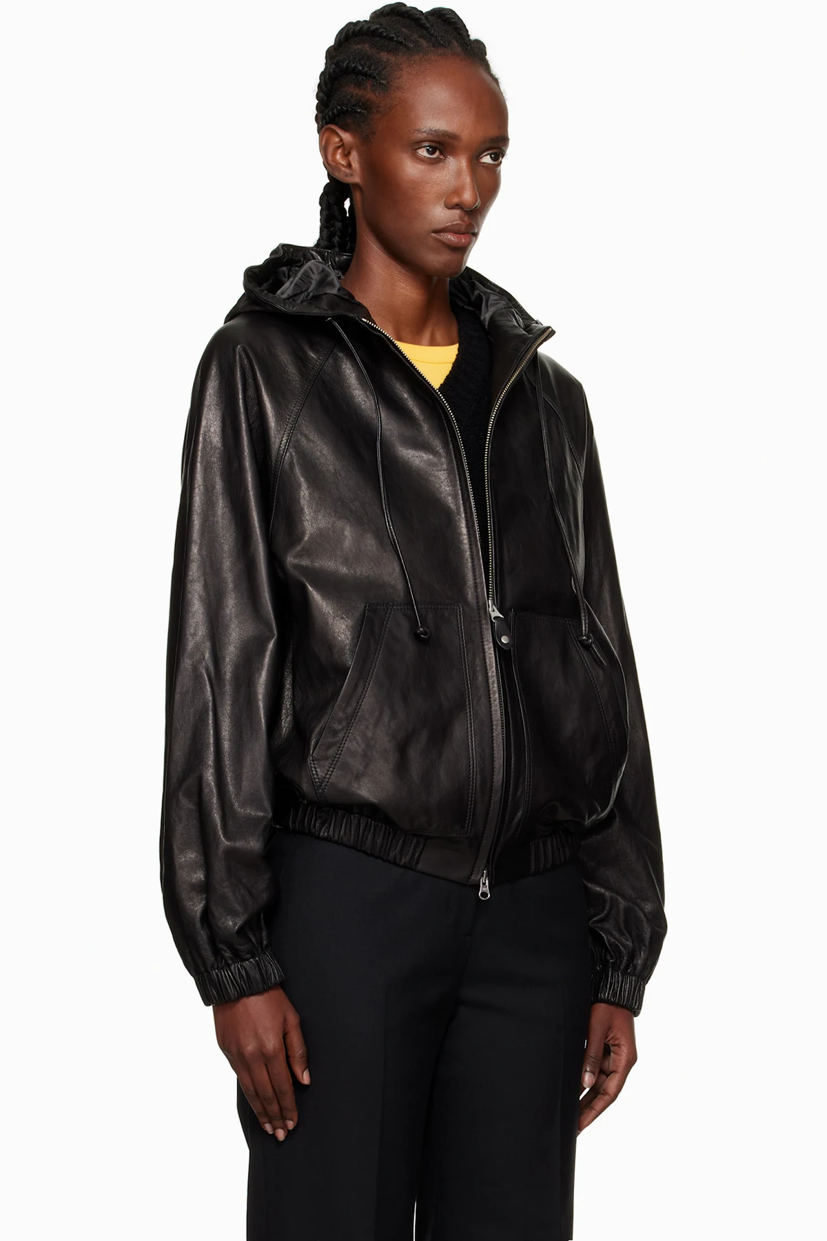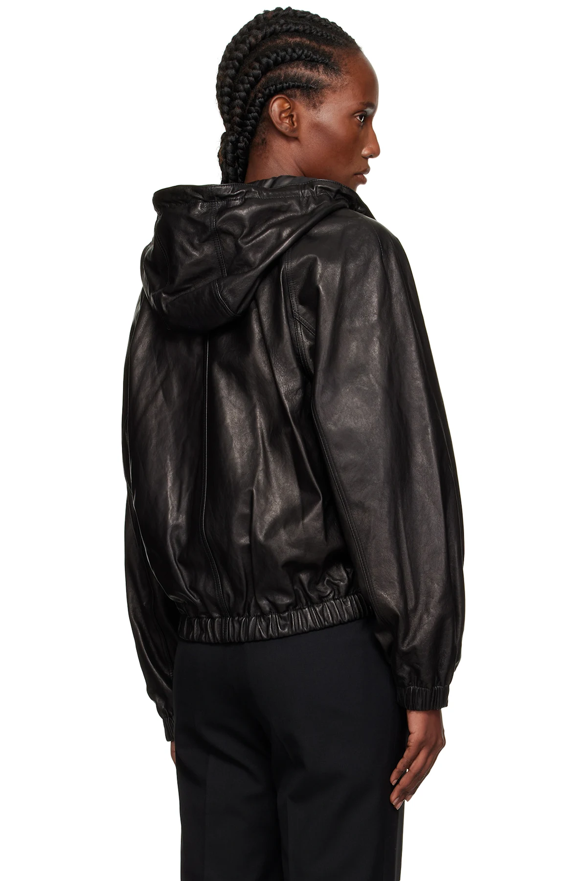 Black Hooded Leather Blouson Jacket